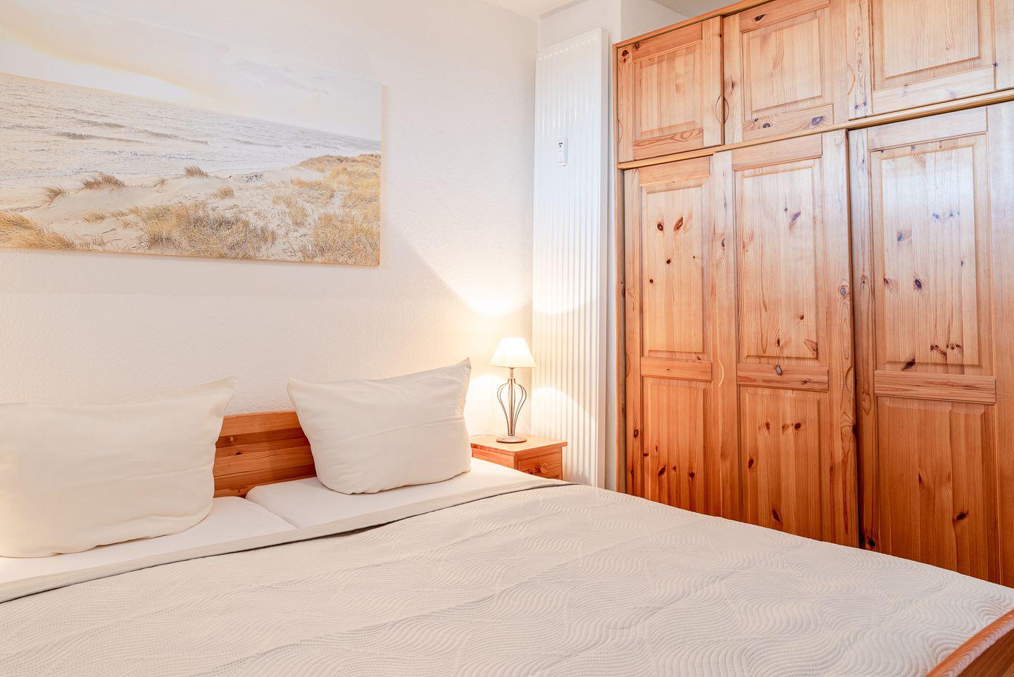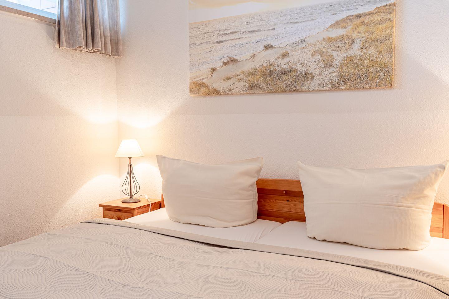 Sie ist ca 52 qm groß und eignet sich für zwei bis vier Personen. Unsere Strandliebe besteht aus einem Wohnzimmer, zwei Schlafzimmern, einer vom Wohnzimmer abgehenden Küche, einem Duschbad mit WC, einer Diele mit Einbauschrank, sowie einem vom Wohnzimmer aus zugänglichen Balkon in Südlage mit Blick ins Grüne und auf die Nordsee.
