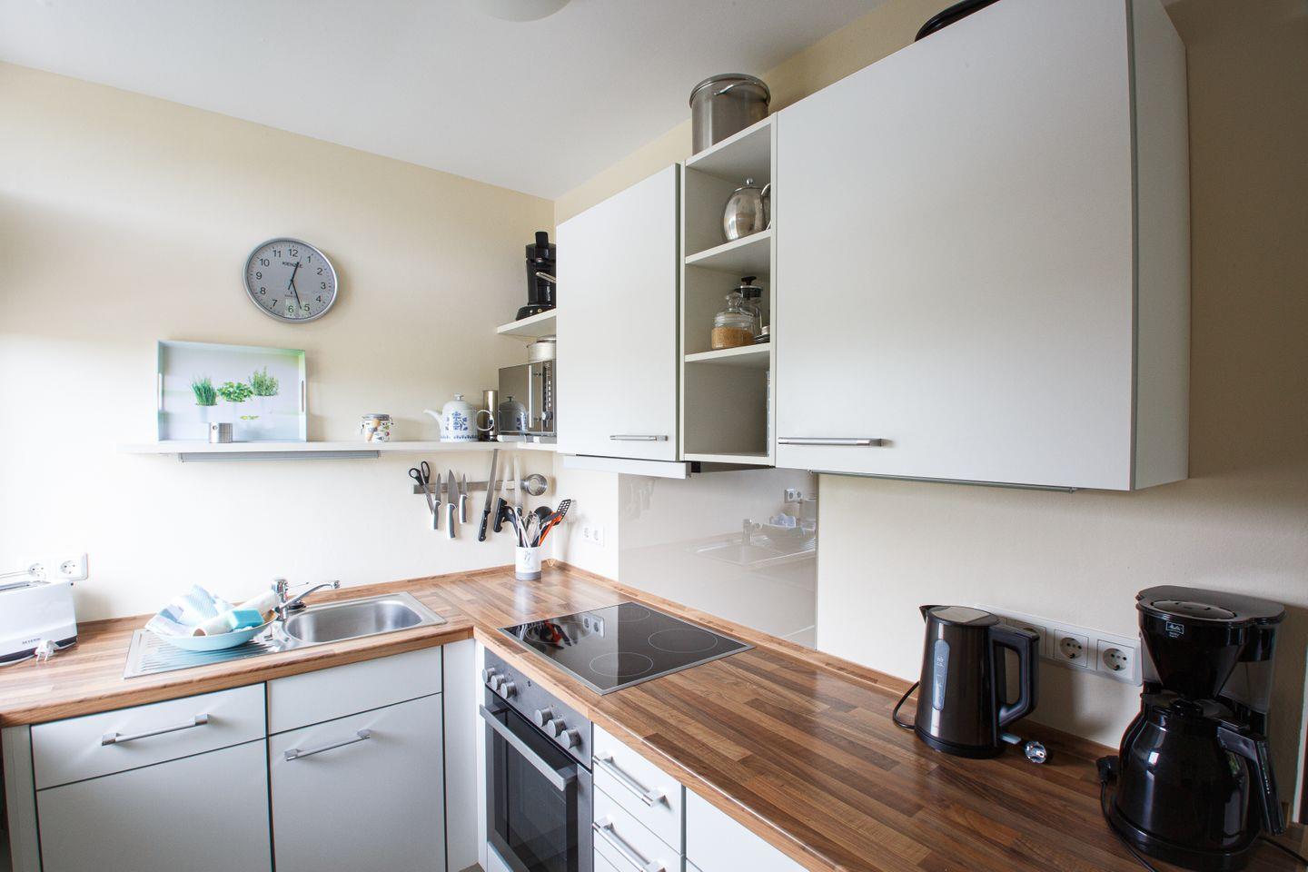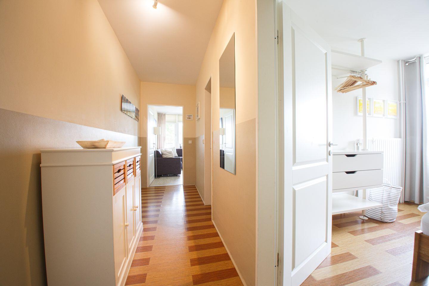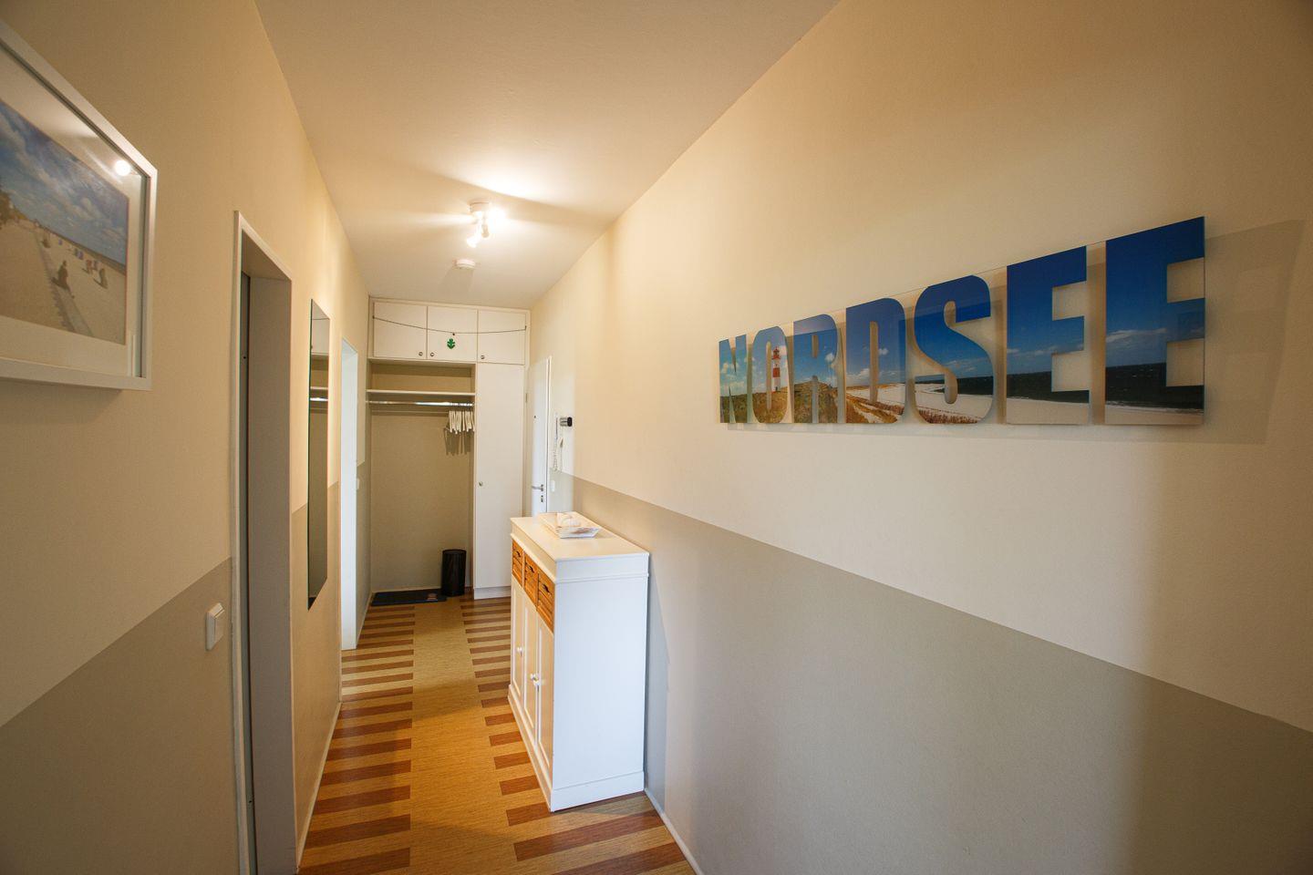 Es begrüßt Sie eine helle, moderne zwei Zimmer Wohnung mit praktischer Aufteilung und einem großen Südwest Balkon, von dem Sie einen seitlichen Blick auf die Nordsee und ins Grüne genießen können.