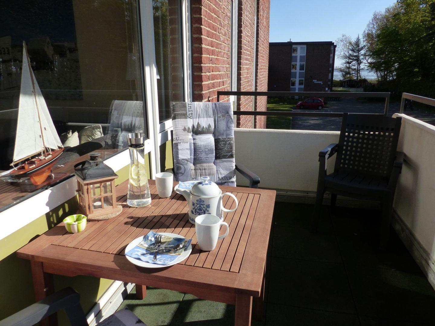 Moderne 2-Zimmer-Wohnung mit Balkon und seitlichem Nordseeblick am Südstrand von Wyk.