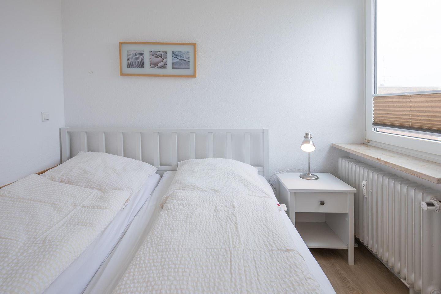 Herzlich willkommen in Wyk! Strandnahe Wohnung in der 4. Etage. Schlafraum, Wohnzimmer, Küche, Duschbad. Fahrradverleih, Sauna, Schwimmbad im Haus. Golfplatz in der Nähe. Bettwäsche/H. optional 20 €. Parkplatz, Hunde willkommen (25 €). Kurabgabe: 2,60 EUR (01.04.-31.10.), 1,30 EUR (01.11.-31.03.) p.P./ÜN. Wir freuen uns auf Ihren Besuch!