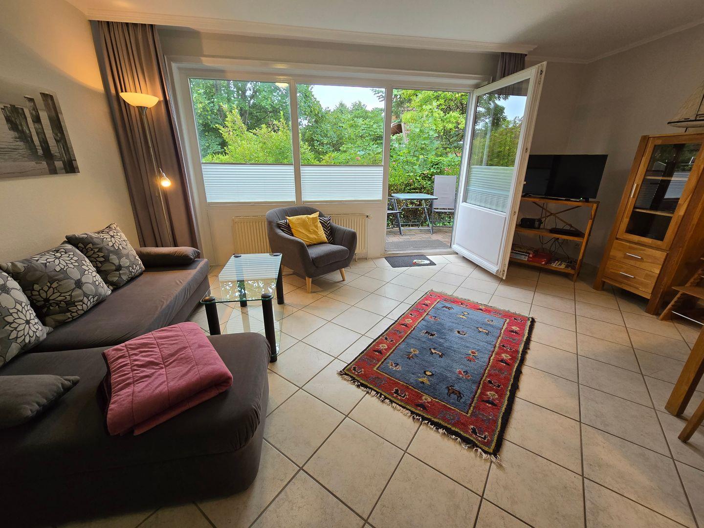 Das Bungalow Mühlengrund befindet sich auf einem ca. 500 m2 großem Grundstück, ist nur wenige Schritte vom Strand und der Kurpromenade entfernt und dabei trotzdem sehr ruhig gelegen. Direkt neben der Mühle, eingefügt in eine kleine parkartige Anlage, ist das Ferienhaus von der Straße zurückgelegt und nicht einsehbar. Den Hafen und das Wellenbad erreichen Sie nach einem kurzen Spaziergang. Zahlreiche Cafés, Restaurants, Geschäfte, Bäckerei und ein sehr schöner "Park an der Mühle" befinden sich in unmittelbarer Nähe. Ein PKW-Stellplatz mit einer Ladestation für Elektroautos (gebührenpflichtig) gehört zum Haus. Dank der günstigen Lage ist auch ein Urlaub ohne Auto kein Problem. Das Bungalow verfügt über eine eigene kleine Süd-Terrasse mit Gartenmöbeln. Das frei stehende Ferienhaus liegt Parterre (zum Eingang muss man zwei Stufen steigen). Das Haus ist auf ein Wohnzimmer mit einem Esstisch, 2 Schlafzimmer, eine Küche mit Essplatz, ein Tageslicht-Duschbad und einen Flur mit Garderobe aufgeteilt. In dem großen Schlafzimmer steht Ihnen ein Doppelbett (180 x 200 cm) zur Verfügung und in dem kleineren Schlafzimmer befindet sich ein Etagenbett und ein Einzelbett. Das WLAN (Glasfaser) können Sie kostenfrei nutzen. Hunde sind erlaubt.