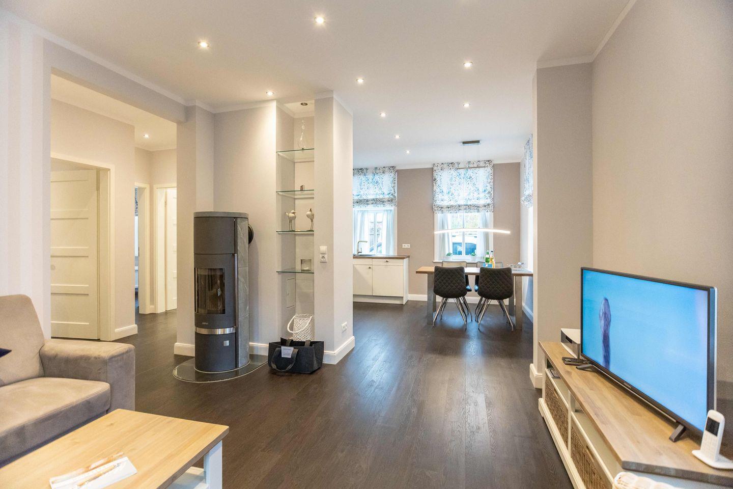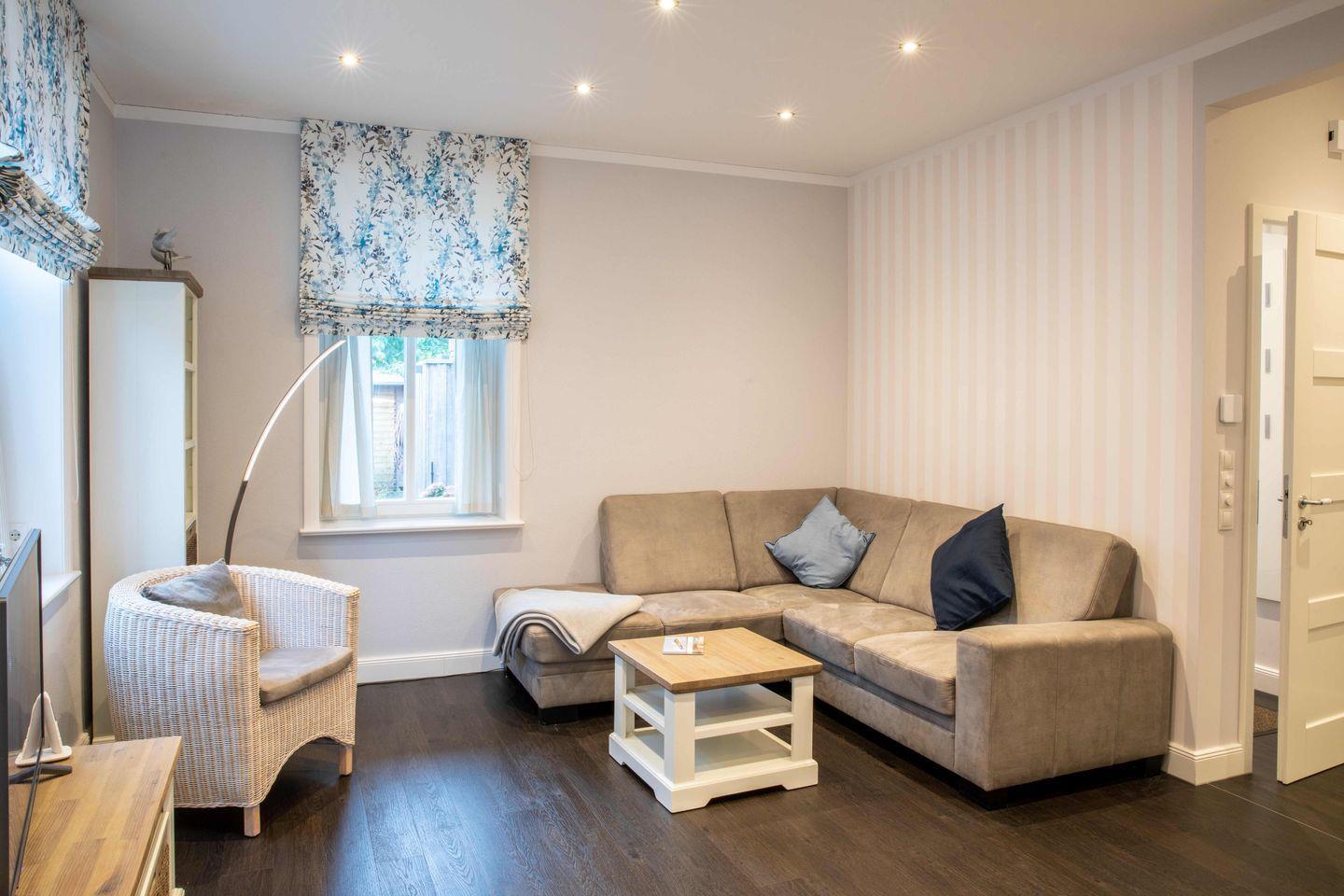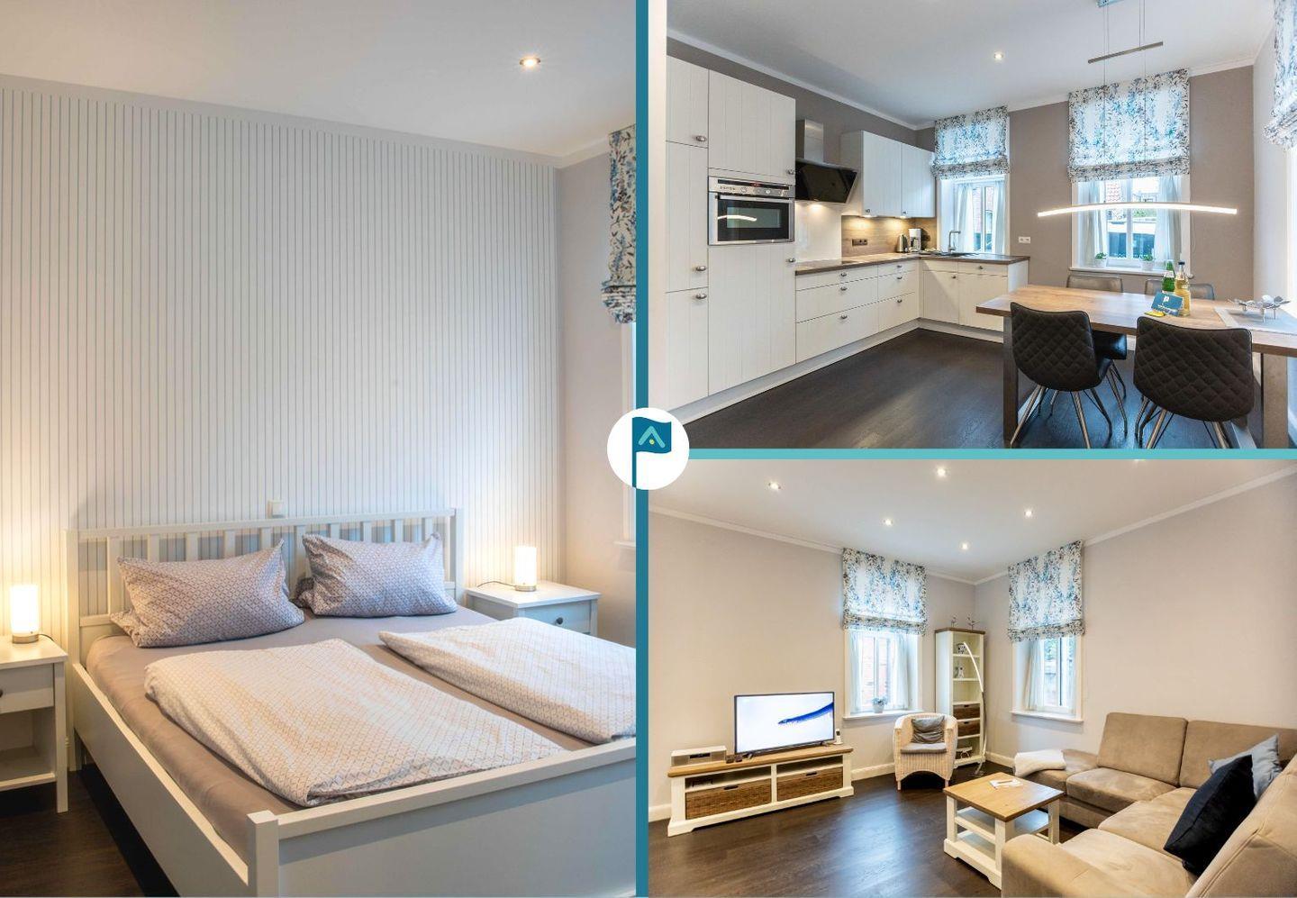 Moderne Ferienwohnung mit Strandkorb in Wyk auf Föhr, zentral und nur wenige Schritte zum Strand und zur Innenstadt.