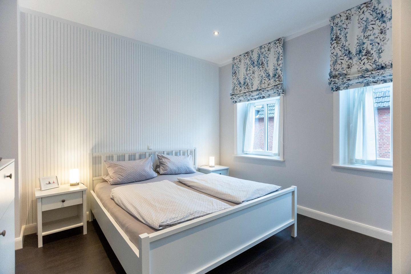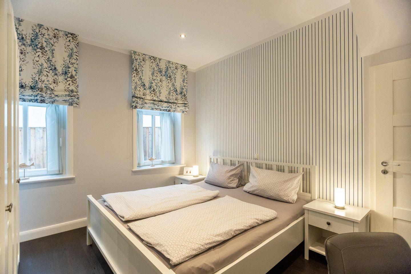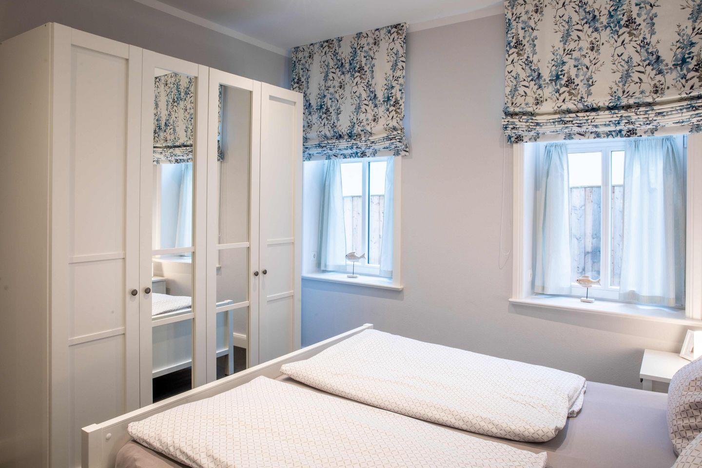 Die großzügigen Schlafzimmer sind jeweils mit einem Doppelbett (180x200), einem geräumigen Kleiderschrank und einer Sitzgelegenheit ausgestattet.