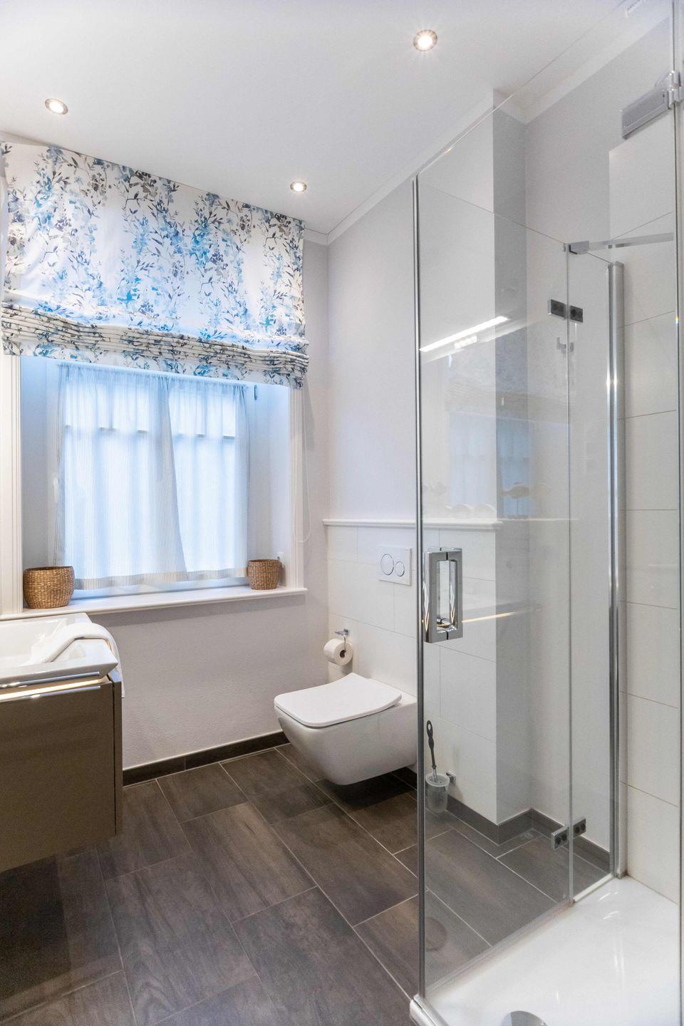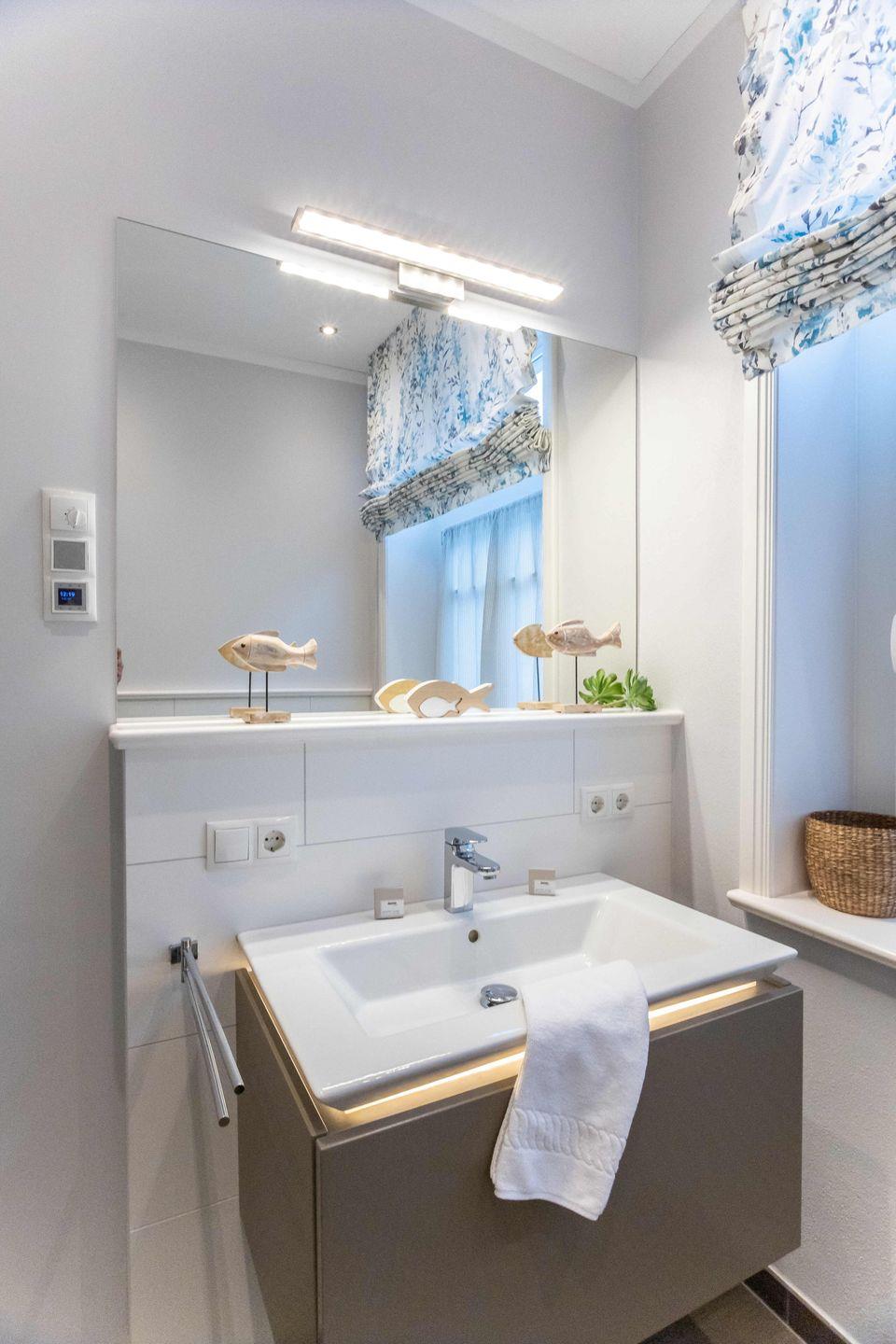 Das Duschbad ist durch seine indirekte Beleuchtung am Waschbecken und dem integrierten Wandradio im Lichtschalter-Design ein besonderer Hingucker.