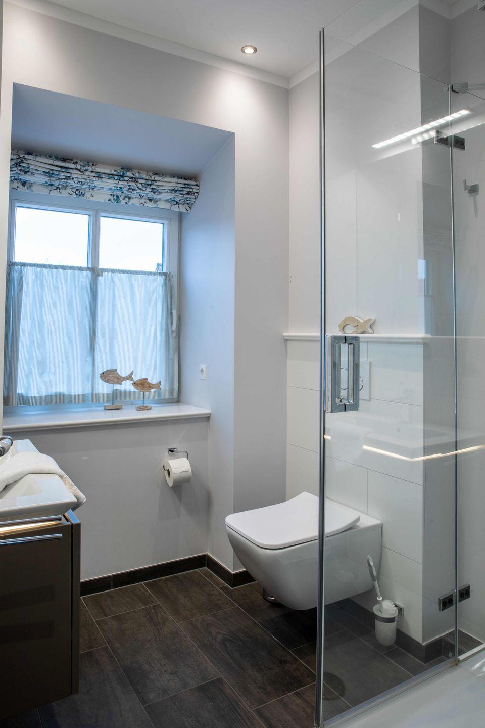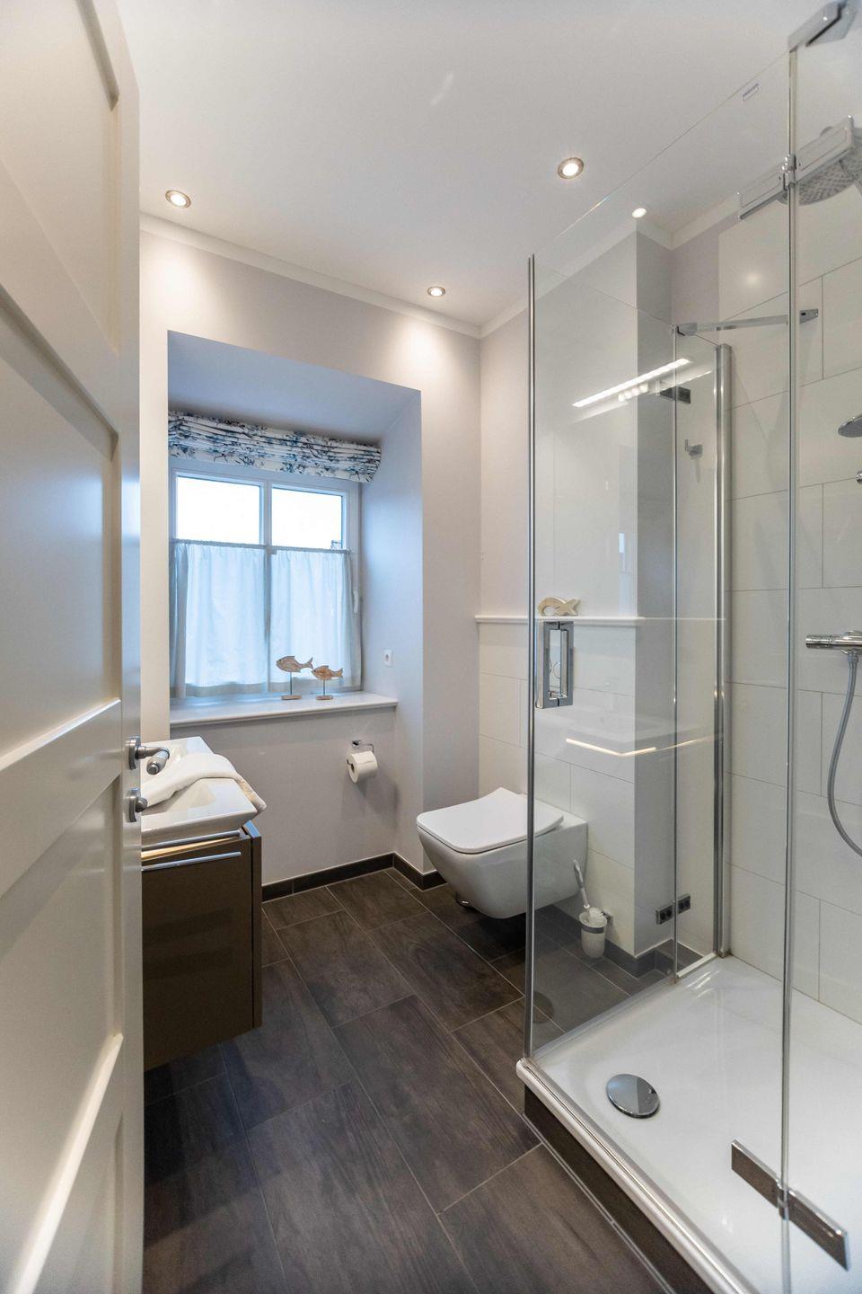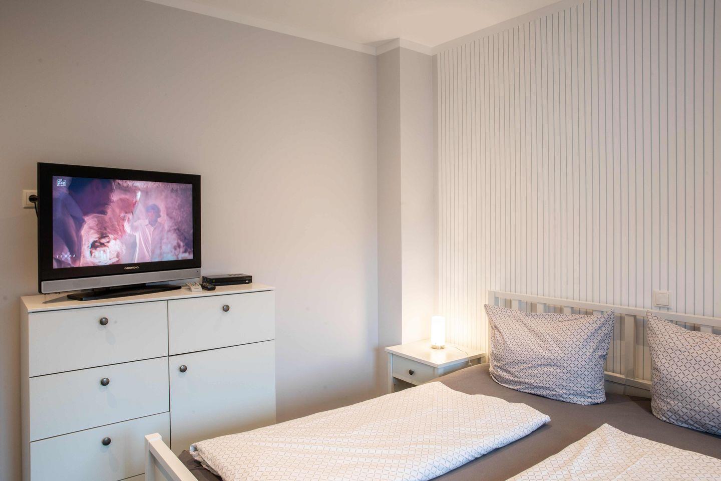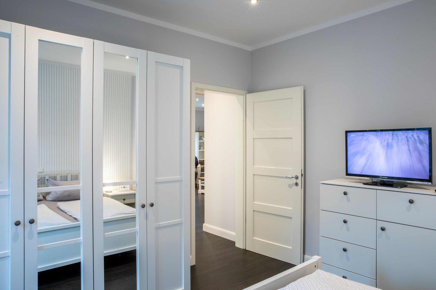 Eines der beiden Schlafzimmer ist mit einem Doppelbett (180x200), das andere Schlafzimmer mit zwei getrennt stehenden Einzelbetten ausgestattet. Beide Schlafzimmer verfügen jeweils über einen Kleiderschrank. Das moderne Duschbad ist in hellen Farben gehalten. Das Highlight der Wohnung ist der wohnungseigene Balkon, welcher geschützt in Richtung des Innenhofes liegt. Ein besonderes Highlight ist der Strandkorb, der Ihnen inklusive Strandlaken von Mai bis September am Wyker Strand (Abschnitt 5) zur Verfügung steht. Dieser befindet sich keine 3 Minuten von Ihrer Ferienwohnung entfernt und ermöglicht entspannte Stunden direkt am Meer.
