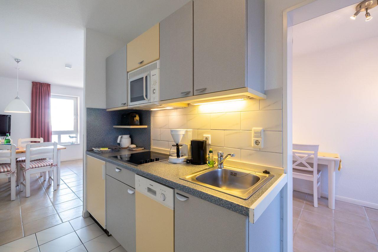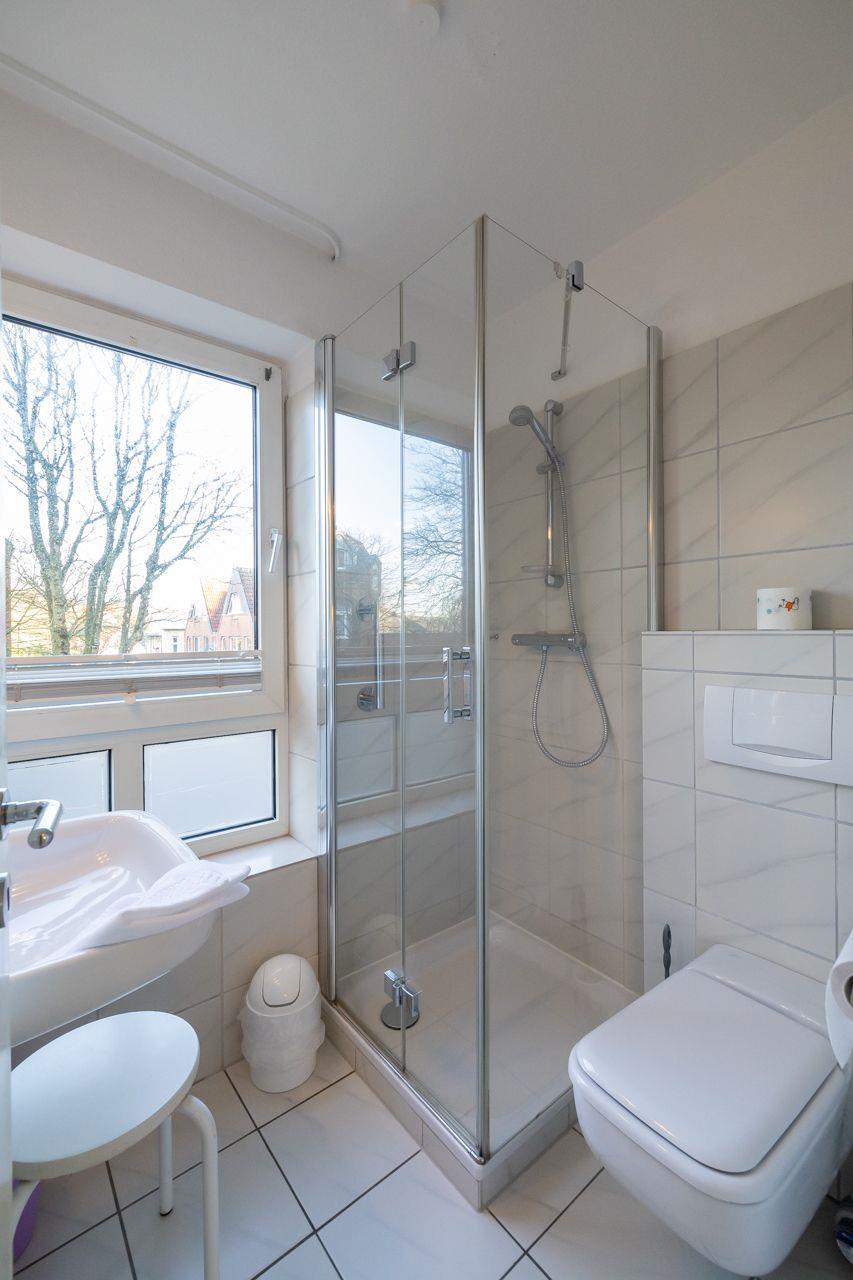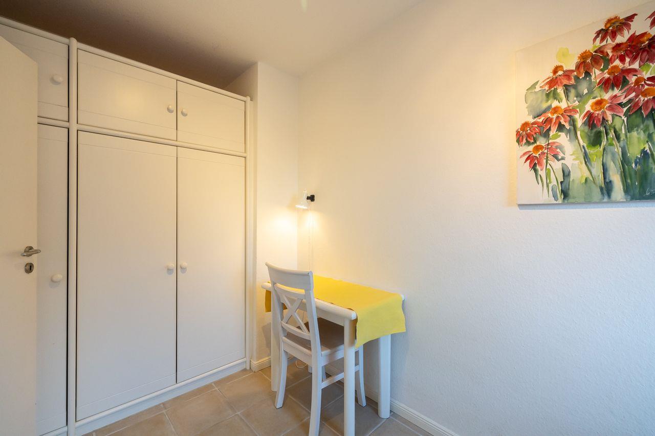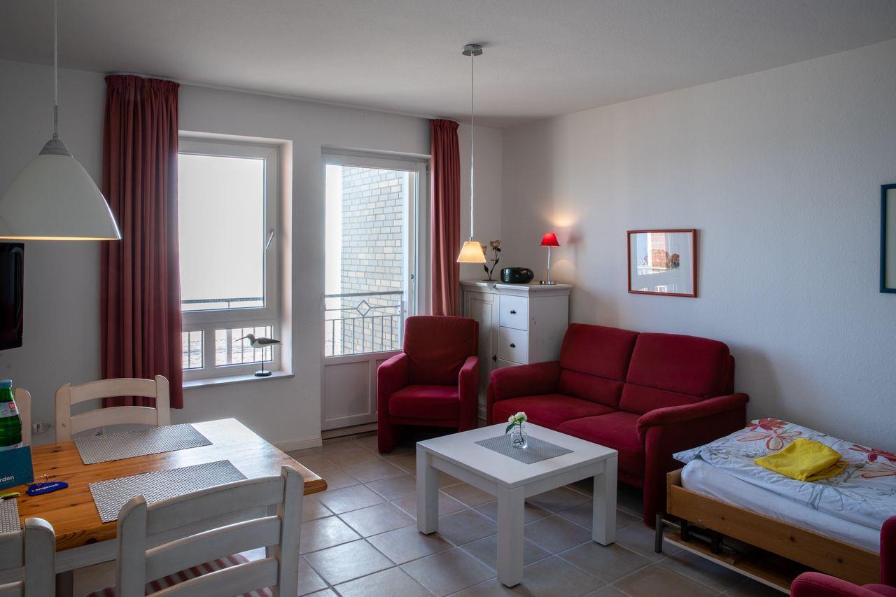 Die Wohnung selbst liegt in der 1. Etage mit einem Balkon. Besonders hervorzuheben ist der direkte Blick auf das Meer Richtung Osten. Hier lassen sich die eigenen Kinder beim Spielen beobachten.