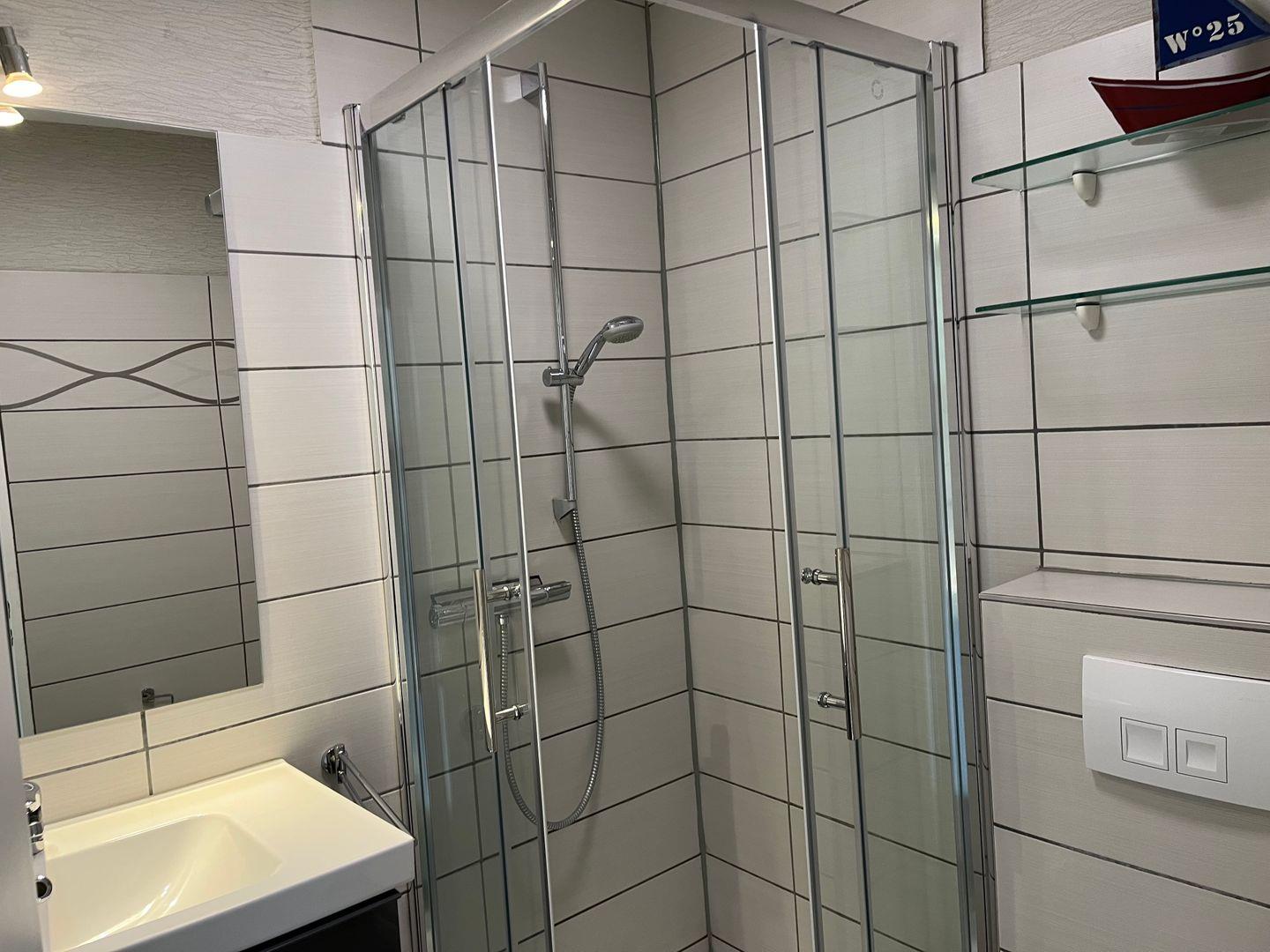 Direkt am Meer gelegen finden Sie in dieser Ferienwohnung in der 1. Etage (ab Hochparterre gibt es einen Fahrstuhl, bis dahin sind es ca. 7 Stufen) ein kombiniertes Wohn-Esszimmer, von dem Sie in die separate Küche gelangen. Vom überdachten Balkon haben Sie einen tollen Blick auf die Nordsee und ihre Halligen. Das Badezimmer mit Dusche ist hell und freundlich. Es steht Ihnen ein Schlafzimmer mit zwei getrennten Betten (je 90*200cm) und ein Schlafzimmer mit einem kleinen Doppelbett (140*200cm) zur Verfügung. So gelingt ein Urlaub allein oder zu zweit und auch mit der ganzen Familie. Auch Ihr Hund ist nach Absprache herzlich willkommen. Im Fahrradraum, der sich im Keller des Hauses befindet, ist Ihr Zweirad gut aufgehoben. Das Schwimmbad (kostenlos) und die Sauna (gegen Gebühr) im Nachbarhaus Uthlande stehen Ihnen zur Verfügung. Bitte beachten Sie, dass es aufgrund der Pandemie und der aktuellen Landesverordnung zu Einschränkungen der Nutzung kommen kann. Daraus ergibt sich keine Mietminderung. Der Mindestaufenthalt beträgt 3 Übernachtungen.