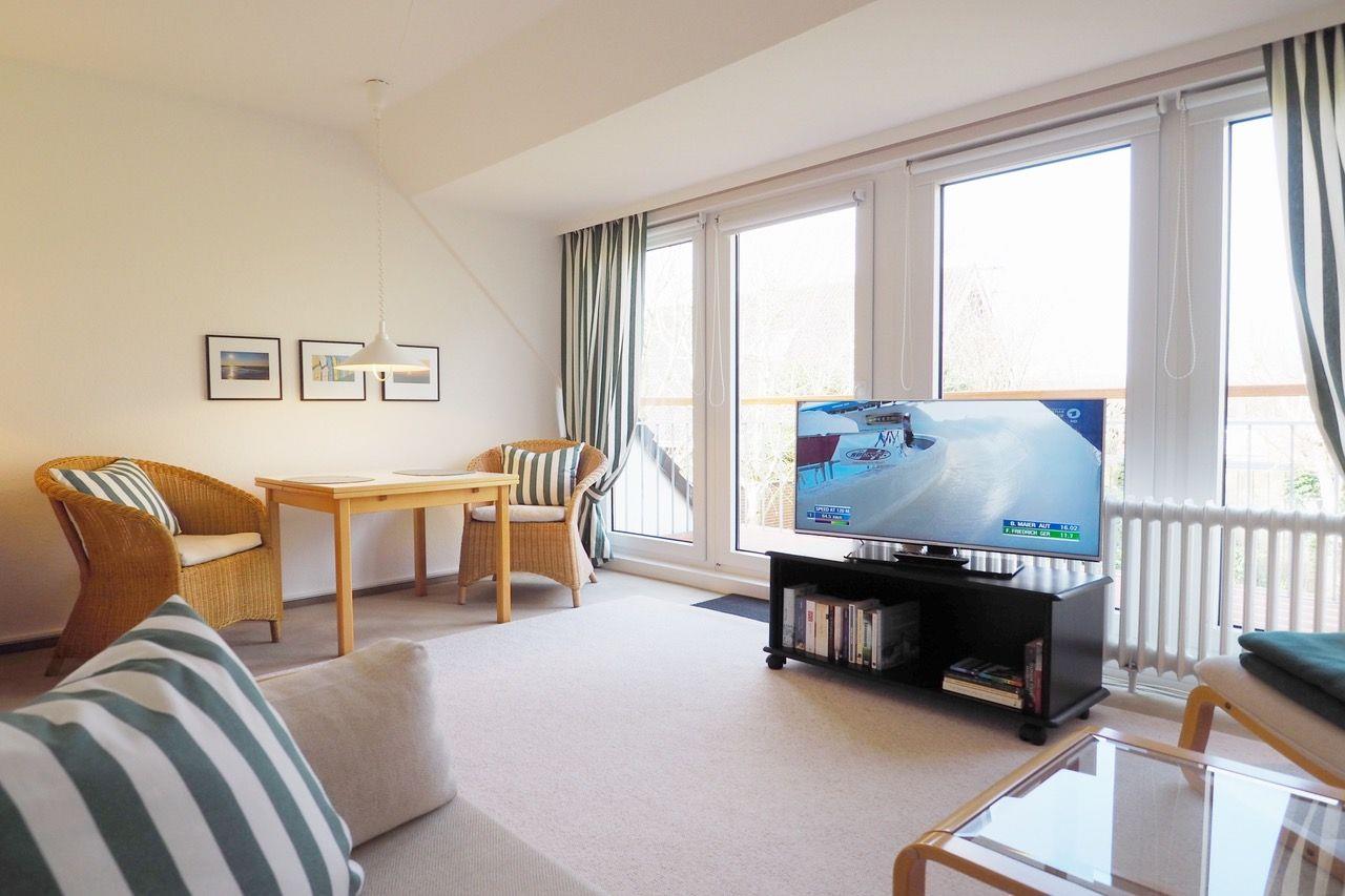 Helle Ferienwohnung mit Balkon und Strandkorb nahe dem Wyker Strand für erholsame Urlaubstage.