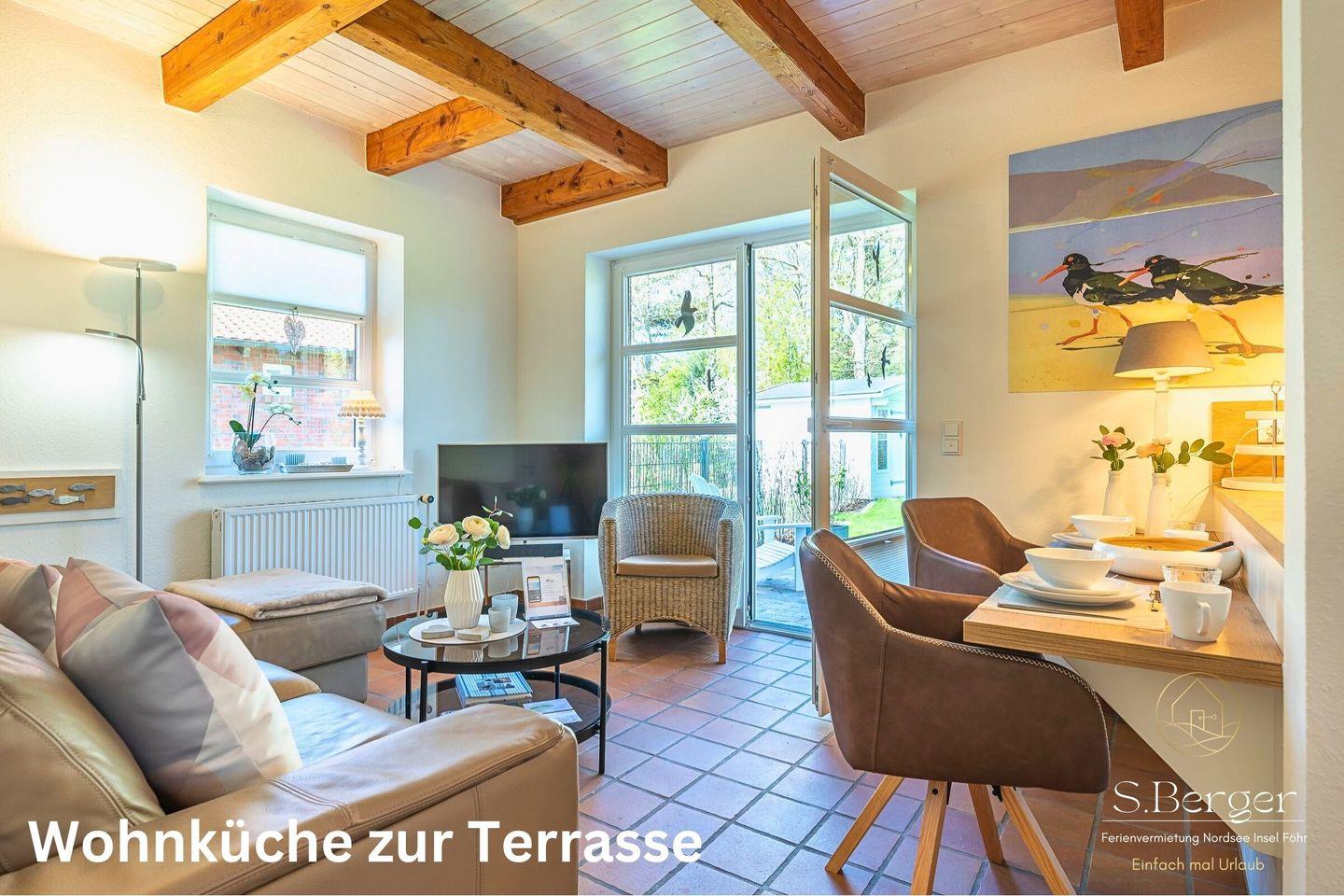Erleben Sie das Möwennest: Moderne Ferienwohnung mit Terrasse und Garten nahe Nordseestrand.