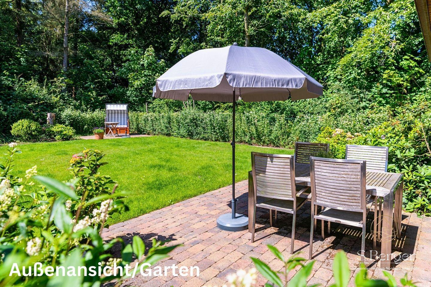 Ein herausragendes Merkmal der Ferienwohnung ist der großzügige, eingezäunte Garten (125 cm Höhe) mit Terrasse, umgeben von einem malerischen Baumbestand, der Ihnen die Möglichkeit bietet, bei einem Glas Wein zu entspannen. Gartenmöbel, ein Strandkorb und ein Grill stehen Ihnen zur Verfügung, damit Sie die warmen Sommerabende in vollen Zügen genießen können. Sie möchten die Schönheit der Natur entdecken? Der 900 Meter entfernte Strand, ein wunderschöner Sandstrand, lädt zu langen Spaziergängen, Strandaktivitäten und Wassersport ein. Ob Schwimmen, Windsurfen oder Beachvolleyball – das maritime Abenteuer erwartet Sie.
