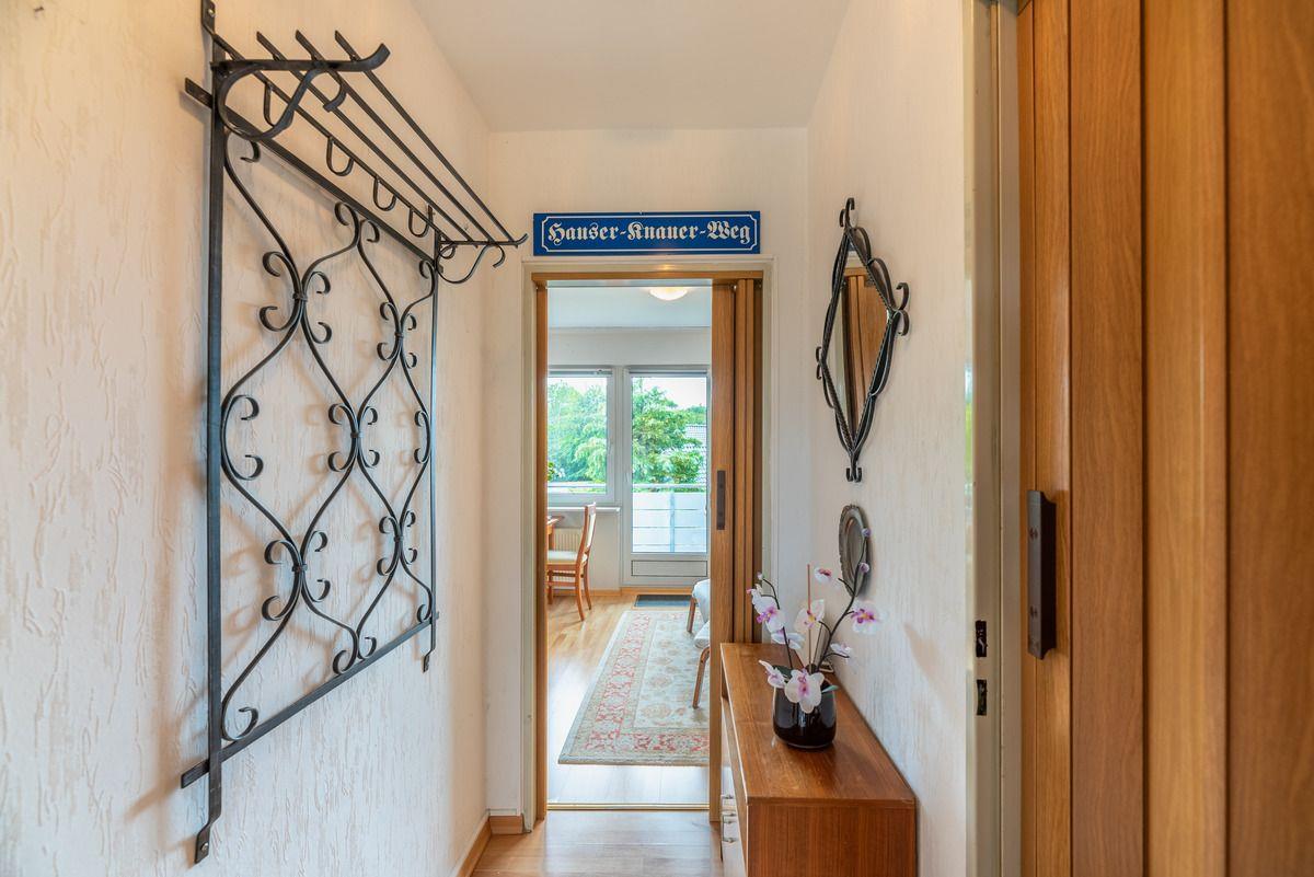 Gemütliche Ferienwohnung mit separatem Schlafzimmer, Duschbad und sonnigem Balkon. Ruhige Lage am Waldrand mit Parkplatz. Spielplatz, Bäcker und Restaurant in Laufnähe.