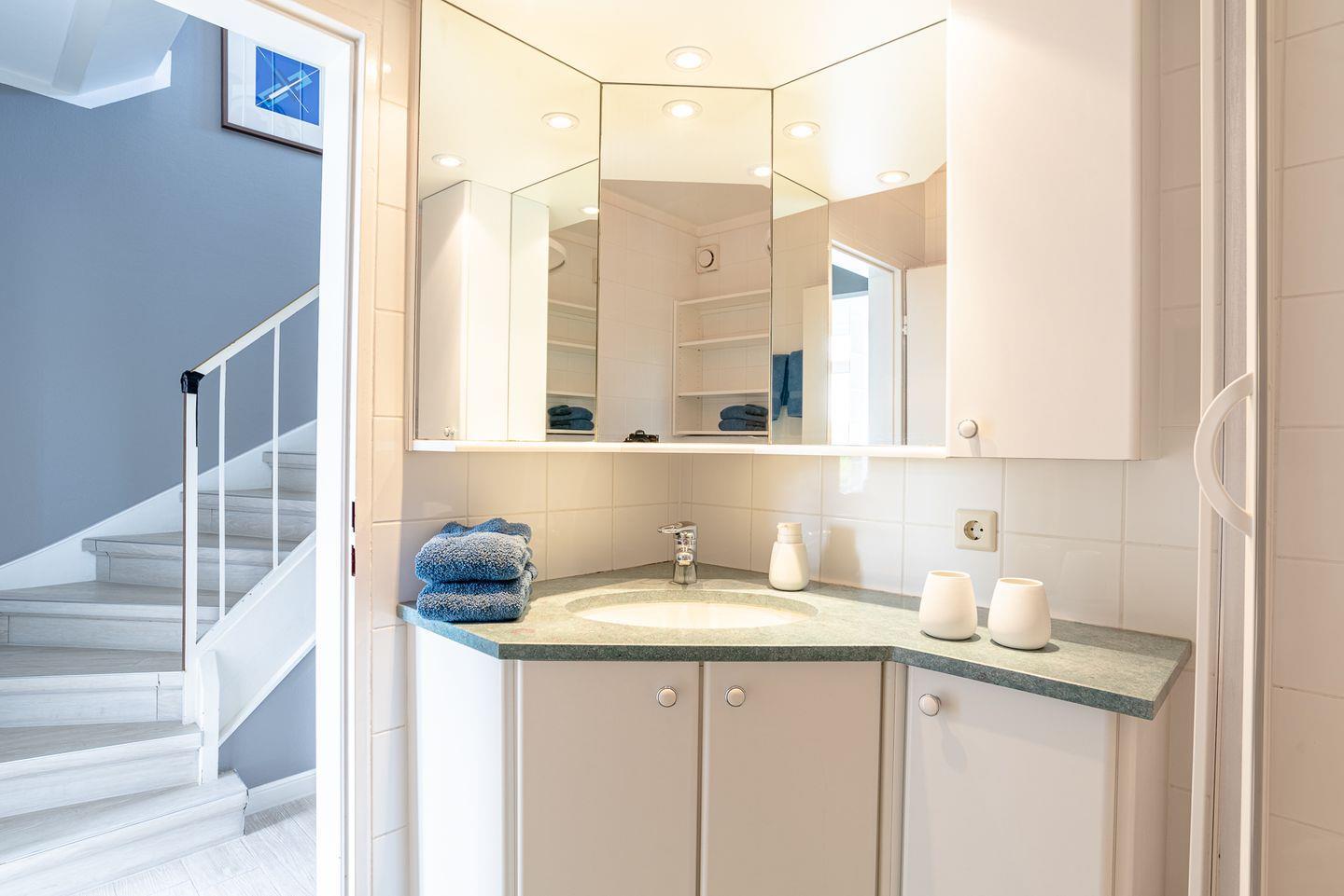 In der oberen Etage befinden sich zwei komfortable Schlafzimmer, die für erholsame Nächte sorgen. Die geschmackvolle Einrichtung und die ruhige Atmosphäre machen diese Räume zu einem perfekten Rückzugsort nach einem Tag am Strand.
