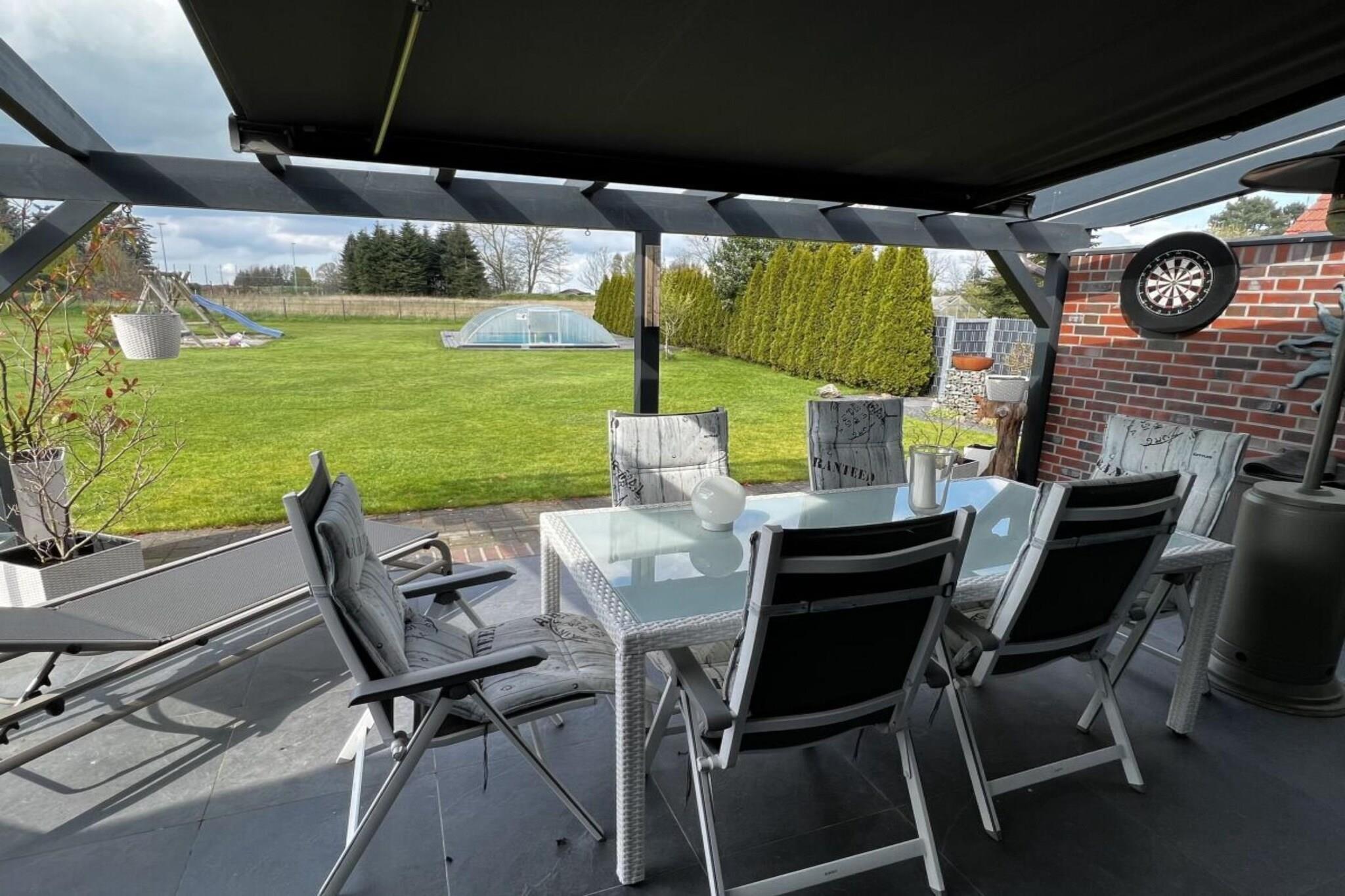 Erleben Sie Komfort und Entspannung in diesem großzügigen Ferienhaus mit beheiztem Pool, Sauna und Whirlpool in Friesland.