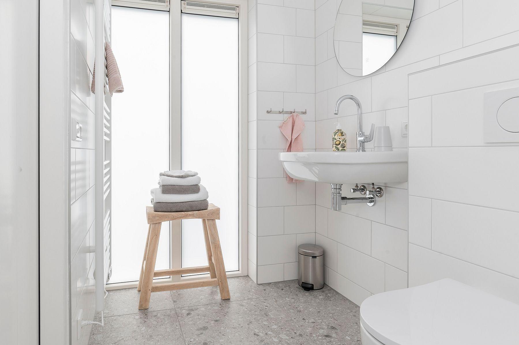 Im Ferienhaus '2bijZee' finden Sie alles, was Sie für einen gelungenen Urlaub brauchen. Im Erdgeschoss befinden sich das Wohnzimmer, die Küche und das Badezimmer mit begehbarer Dusche, Waschbecken und Toilette. Vom Wohnzimmer aus führt eine Treppe zum Schlafzimmer im Obergeschoss mit angrenzender Toilette.