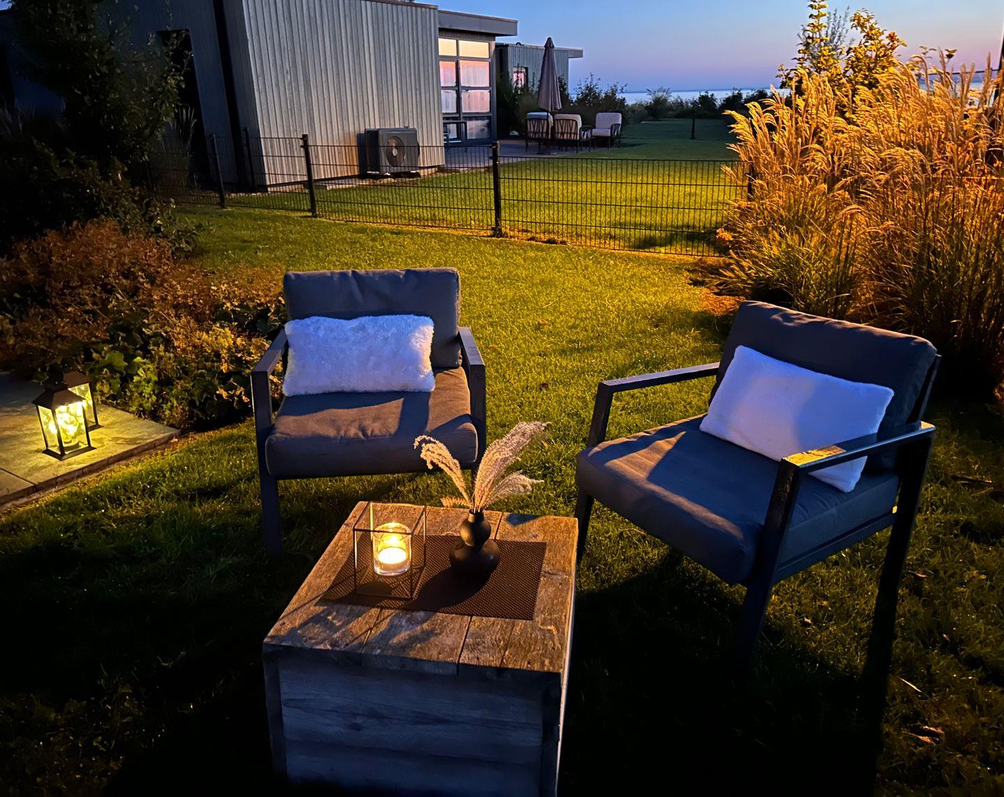 Willkommen in unserem Chalet WolkeSieben, das höchsten Komfort und erstklassige Annehmlichkeiten bietet. In dritter Reihe am Ufer präsentiert sich unser modernes L-Cube mit einem großzügigen Gartengrundstück, eigenem Parkplatz und einer Sonnen-Terrasse, die einen unvergleichlichen Blick auf das Meer ermöglicht. Ab 2024 ist das Grundstück von unserem Chalet WolkeSieben komplett eingezäunt.