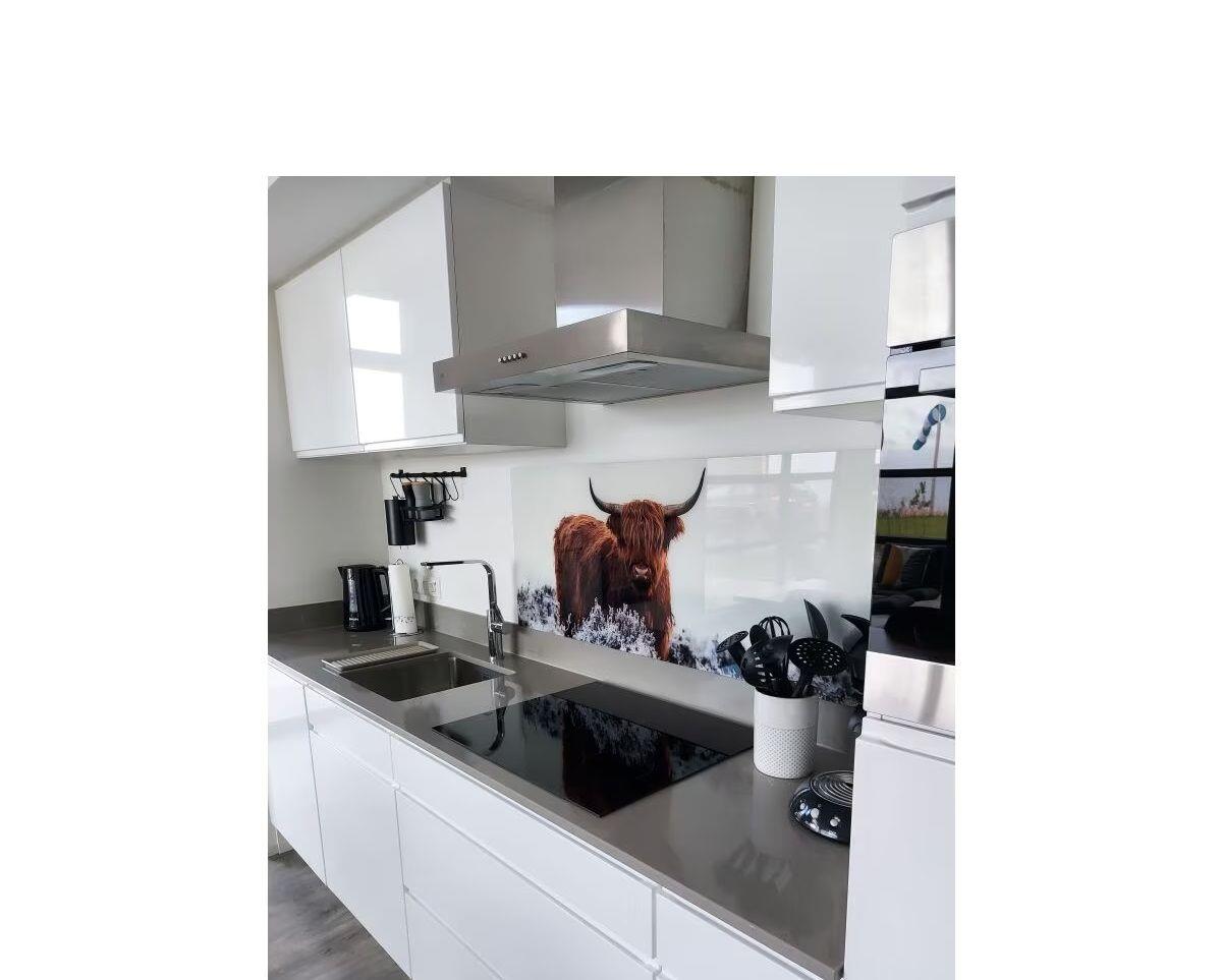 Lassen Sie sich in der voll ausgestatteten Küche mit modernsten Geräten verwöhnen. Sie verfügt über einen Induktionsherd, Backofen, Mikrowelle, Geschirrspüler und einen großzügigen Kühlschrank mit Gefrierfach. Küchenutensilien, Geschirr und Besteck sind selbstverständlich vorhanden, sodass Sie über alles verfügen, was Sie für die Zubereitung Ihrer Lieblingsgerichte benötigen. Ein einladender Essbereich rundet das Angebot ab und ermöglicht gemeinsame Mahlzeiten in geselliger Runde.