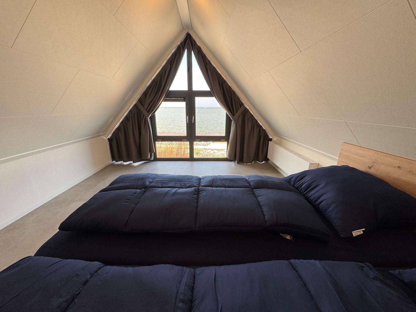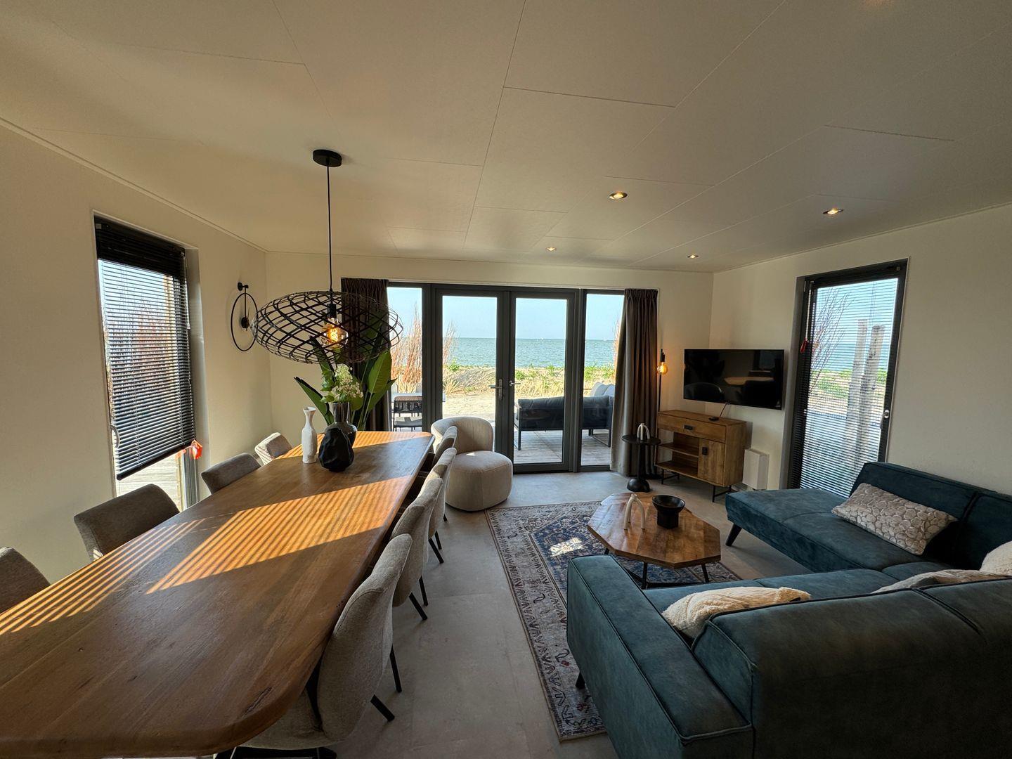 In erster Reihe am IJsselmeer liegt unser neues, modern eingerichtetes Chalet Sonnendeck mit eigenem Parkplatz mit Wallbox und schöner Sonnen-Terrasse. Unser top-modernes Chalet bietet 4 Schlafzimmer, einen offenen Wohn-/Essbereich mit Blick aufs Meer und eine moderne Küche - ideal für Meerliebhaber sowie eine große Familie. Highlight ist das Schlafzimmer oben mit Panorama-Ausblick auf's Wasser. Euer Vierbeiner ist bei uns auf Anfrage ebenfalls herzlich willkommen.