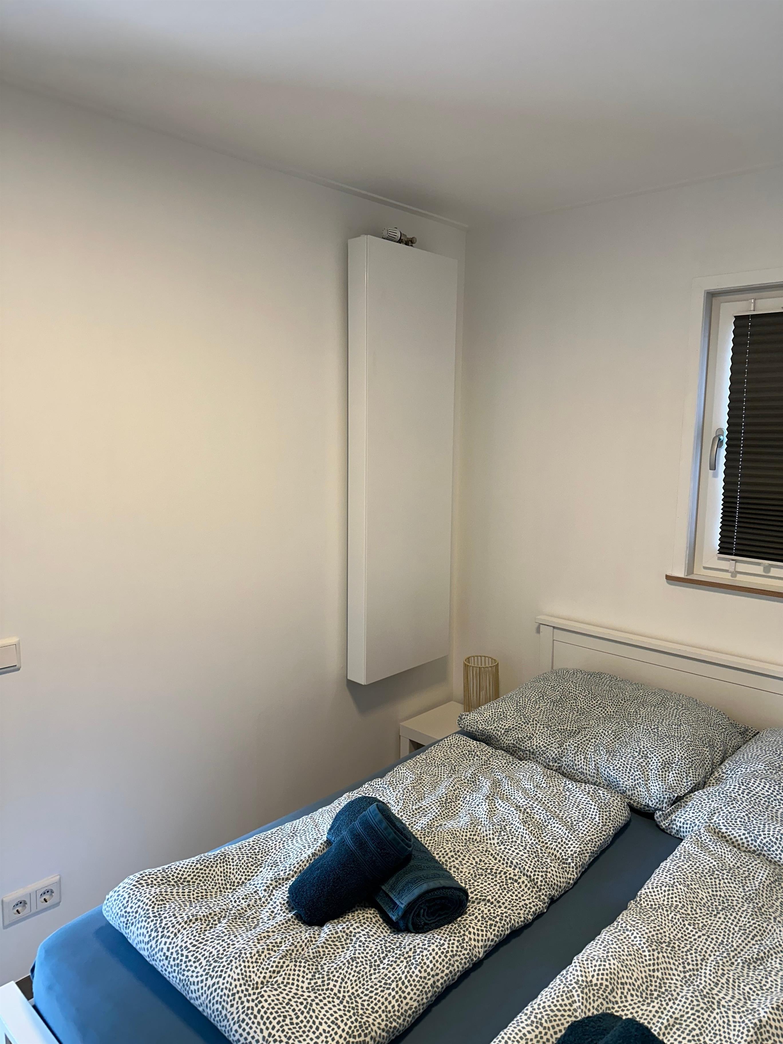 Im rechten Schlafzimmer steht ein Doppelbett und eine Kommode.