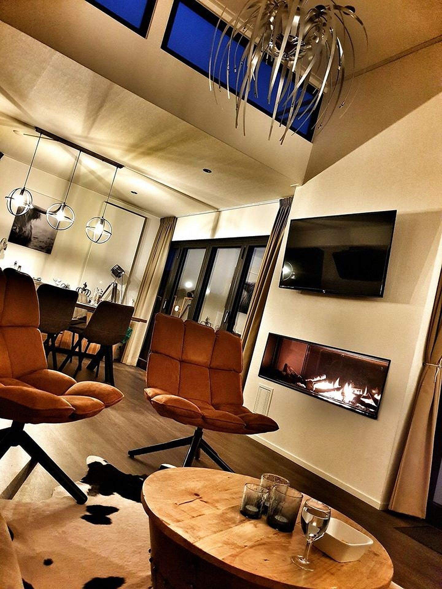An kalten Tagen wird es durch den zusätzlichen, schönen Design-Gaskamin so richtig warm und kuschelig. Diese Funktion steht von September bis Mai zur Verfügung.