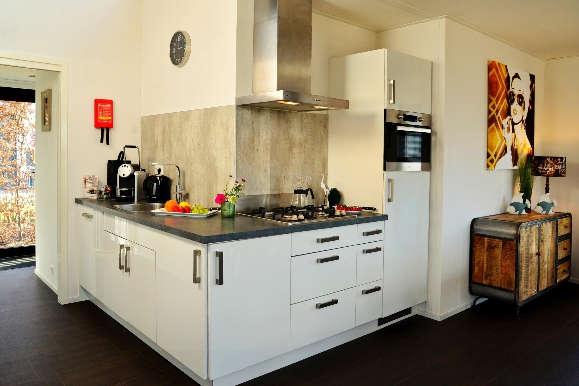 Zum Wohnbereich gehört zudem eine offene Küche, in der es an nichts fehlt, was zum Kochen und Frühstücken benötigt wird.