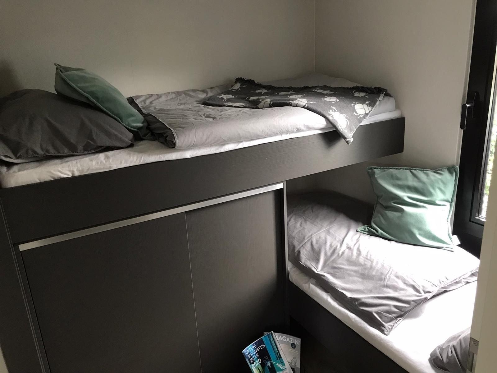 Das "Meerblick-Haus" ist 65m² groß und für 6 Personen hochwertig ausgestattet.Der große und eingezäunte Garten bietet einen Blick auf das Veluwemeer. Hier gibt es einen Gasgrill, einen großen Tisch mit 6 Stühlen, 2 Liegen, eine Hängematte und einen Loungebereich auf der Dachterrasse - und meistens die schönsten Sonnenuntergänge!Bis zum Sandstrand sind es nur ca. 20m. Bis zum Beach- Restaurant sind es ca. 200m und bis zum Supermarkt sind es ca. 300m - hier gibt es fast alles, was das Herz begehrt.Im Haus befinden sich 3 Schlafzimmer. Eines mit Doppelbett und begehbarem Kleiderschrank und Badezimmer, das zweite mit 2 Einzelbetten, kleinem Kleiderschrank und das 3te Schlafzimmer befindet sich im Obergeschoss-hier keine komplette Stehhöhe-aber mit Blick aufs Veluwemeer. Der Favorit unter den jüngeren Gästen! Mit Klimaanlage.Insgesamt gibt es 2 Badezimmer mit einer Regendusche und einer Handbrause sowie einem Waschtisch mit Ambiente Beleuchtung!Das Erdgeschoss kann im Sommer Boden - und Wand gekühlt werden. Im Winter werden Boden und Wände beheizt! Die Fensterfront zur Terrasse lässt sich am Essplatz aufschieben, sodass der Blick aufs Wasser nahtlos freigegeben wird!Im Wohnzimmer und in 2 Schlafzimmern gibt es einen Fernseher mit GoogleChrome-Stick um mit Ihrem Zugang z.B. Netflix zu sehen.Vor dem Haus befindet sich ihr eigener Parkplatz.Ein Abstellraum am Haus kann mit genutzt werden, dieser ist abschließbar und bietet Platz z.B. für Kinderwagen, Fahrräder und eBikes.Unser Meerblick-Haus liegt im Europarcs Bad Hoophuizen, direkt am Veluwemeer und ist umgeben von Wäldern, Feldern und Wasser. Die umliegenden Städte laden zum Bummeln ein. In der Nähe befinden sich die schönen Hafen Städte Harderwijk und Elburg. Hier kann man shoppen, bummeln und schlemmern! Auch Nunspeet um die Ecke ist einfach wunderschön.Bis Amsterdam und Ütrecht ist es auch nicht weit. Wer Ruhe und Erholung sucht, ist hier genau richtig. Auch für Kinder hat der Park viel zu bieten:Der Strand vor der Haustür,Spielplätze,Hallenbad, Minigolf, Kinder Spielhaus mit Animation und das Veluwemeer sind eine schöne Abwechslung. Das Dolfinarium in Harderwijk , der Freizeitpark Walibi , das Pfannkuchen Haus