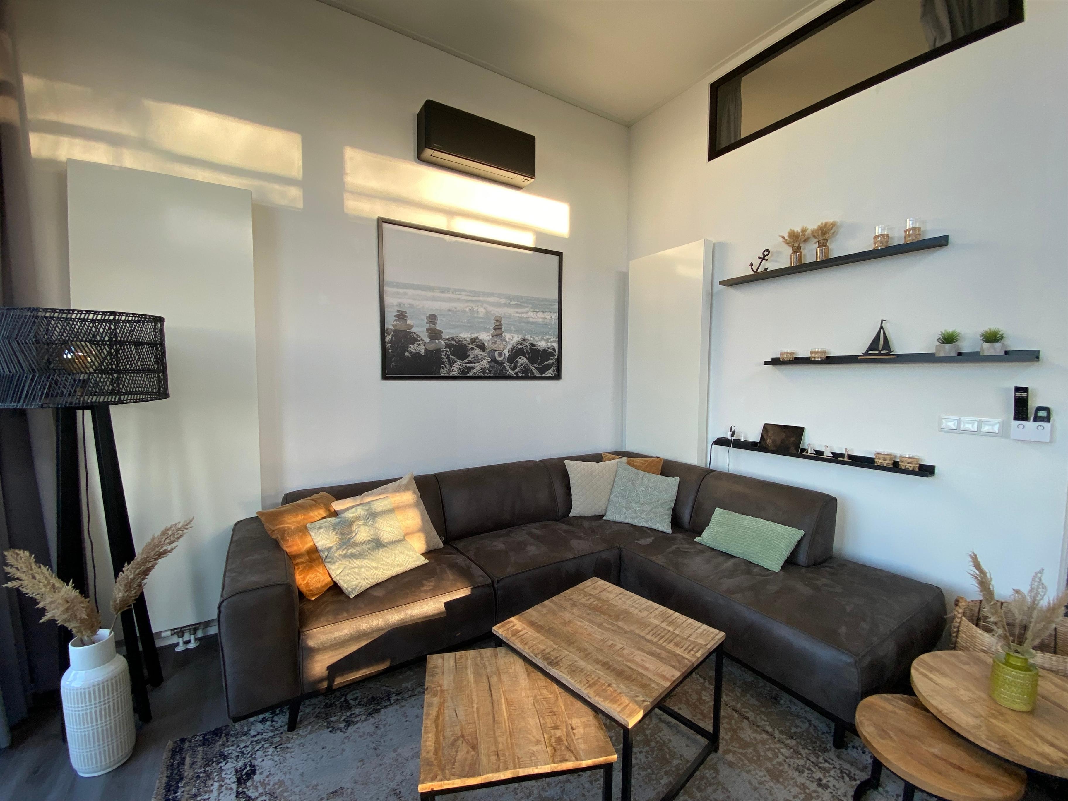 Premium-Vollausstattung. Hier fehlt es an nichts. Die BEACH VILLA ist mit vielen besonderen Annehmlichkeiten ausgestattet. So könnt ihr euch in der vollausgestatteten Küche einen leckeren Cappuccino zubereiten und diesen dann im gemütlichen Sessel vor dem Panorama-Kamin genießen und dabei die Aussicht auf das Wasser bewundern. Abends könnt ihr euch die stimmungsvolle Ambiente-Beleuchtung anmachen und einen spannenden Film auf dem hochwertigen Ambilight-Smart-TV streamen.