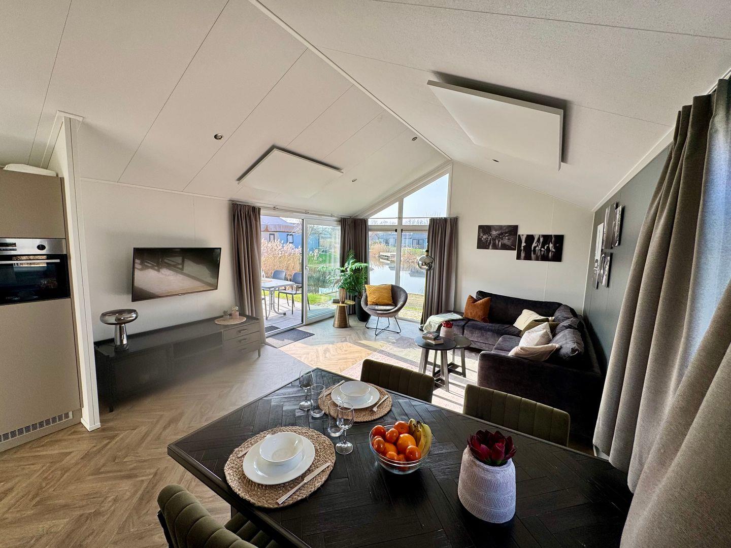 Sichere Dir sich Deinen Aufenthalt im modernen EuroParcs De IJssel Eilanden Chalet Reevemeer mit Steg IJE511 und genieße erholsame Tage direkt am Wasser.