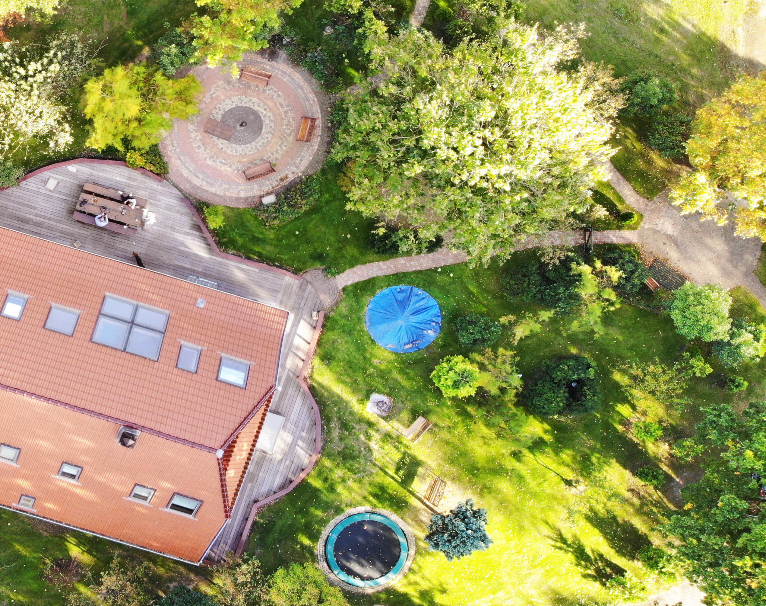 Das Haus steht frei, Um das Haus gibt es viele Terrassen und Sitzplätze. Es ist ein Nichtraucherhaus.