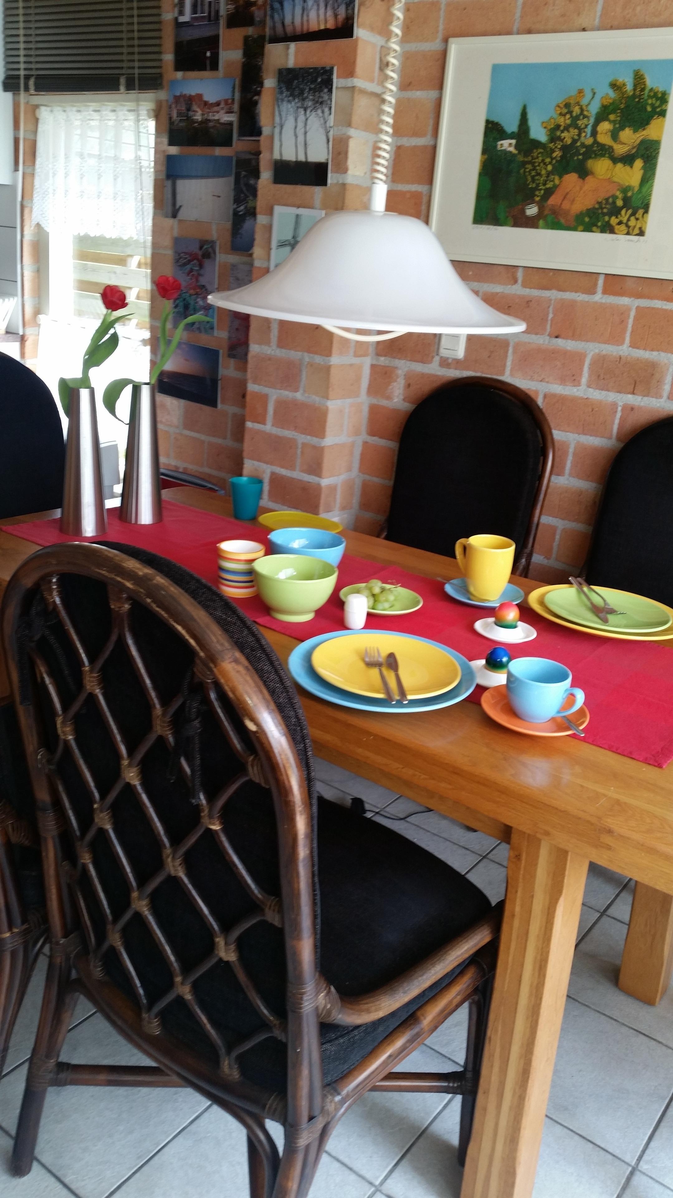 Im EG befinden sich Flur, Bad, der großzügige Wohn-/Essbereich sowie eine neue, vollständig eingerichtete Einbauküche mit Kaffeemaschine, Toaster, 4-Flammen-Gasherd mit elektrischem Backofen, Mikrowelle und Spülmaschine. Im gemütlichen Wohnbereich gibt es außer einer kleinen HiFi-Anlage einen Fernsehempfänger mit digitalem Receiver (alle deutschen Programme) und ein DVD-Abspielgerät; WiFi-WLAN-Zugang ist vorhanden.