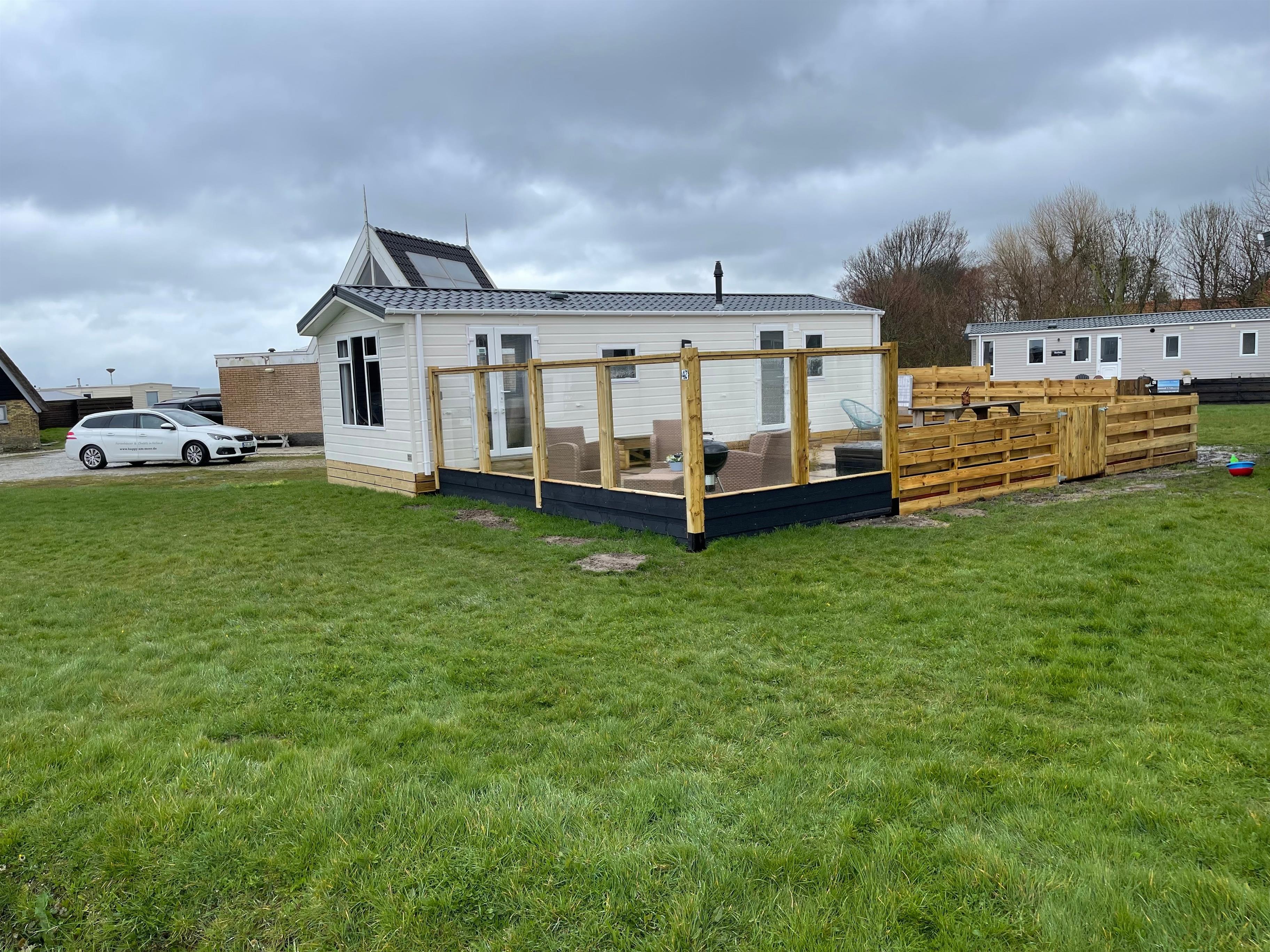 Der Campingplatz liegt direkt am Wattenmeer. Hier stehen 100 Ferienhäuser, es ist ein sehr ruhiger Campingplatz.