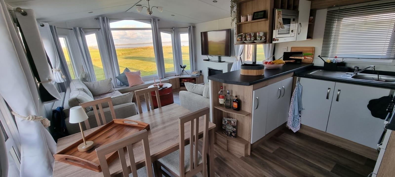 Der Campingplatz liegt direkt am Wattenmeer. Hier stehen 100 Ferienhäuser. Das Chalet bietet besonders die Weite!