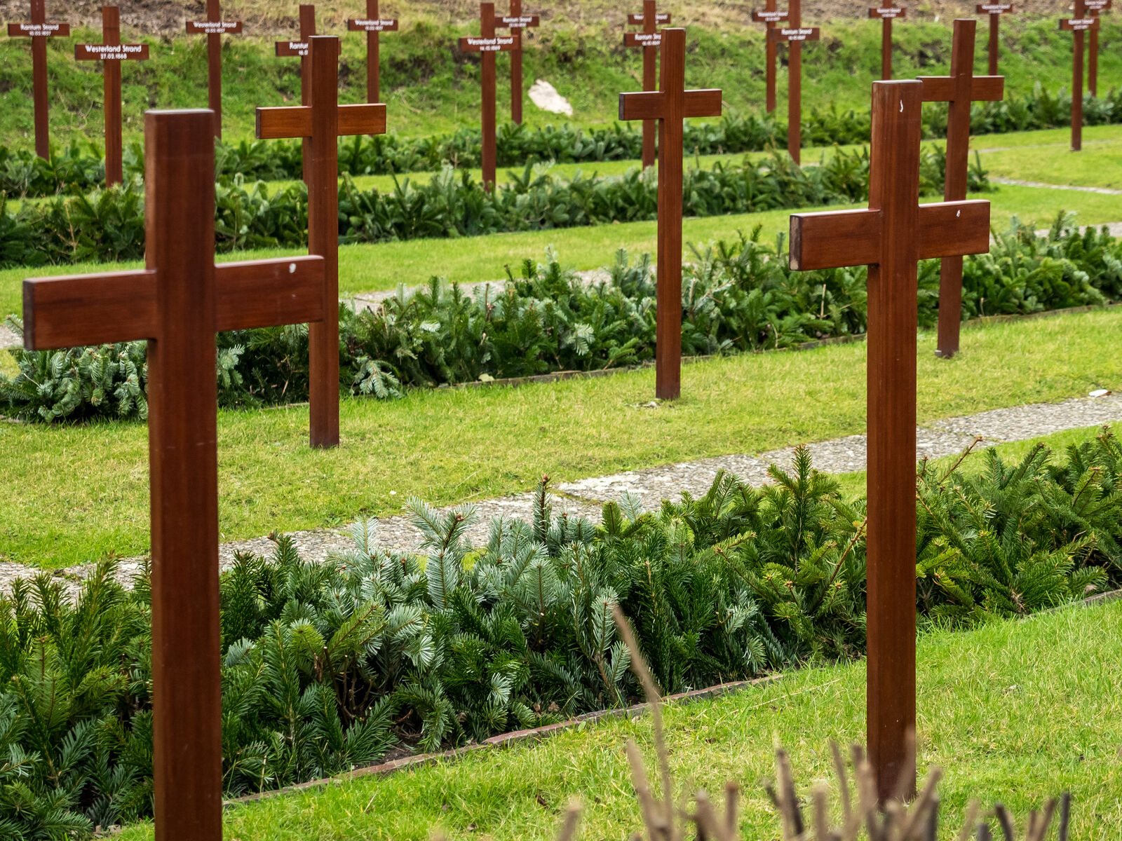Besonders bewegend sind die Inschriften. Statt Namen liest du hier häufig Worte wie „Ein unbekannter Seemann“ oder „Ein Opfer der See“. Manche Steine tragen nur ein Kreuz, andere ein Datum oder einen kurzen Bibelvers. Gerade diese Schlichtheit macht den Friedhof so eindrucksvoll.