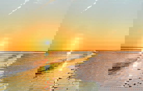 Der breite, feinsandige Naturstrand lädt zum Erholen und Sonnenbaden ein.