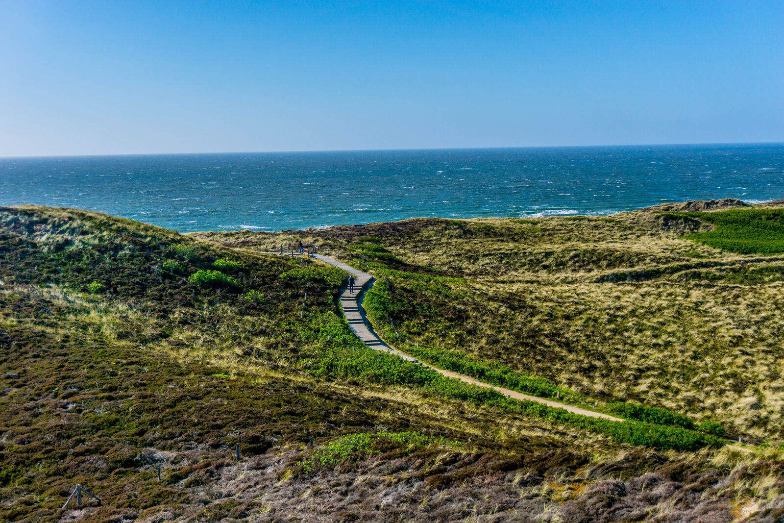 Von der Uwe-Düne aus erreichst du das Rote Kliff über gut ausgebaute Wege durch die Heide und Dünenlandschaft. Je nach Route bist du etwa 10 bis 20 Minuten unterwegs – ganz entspannt und ohne große Steigungen.