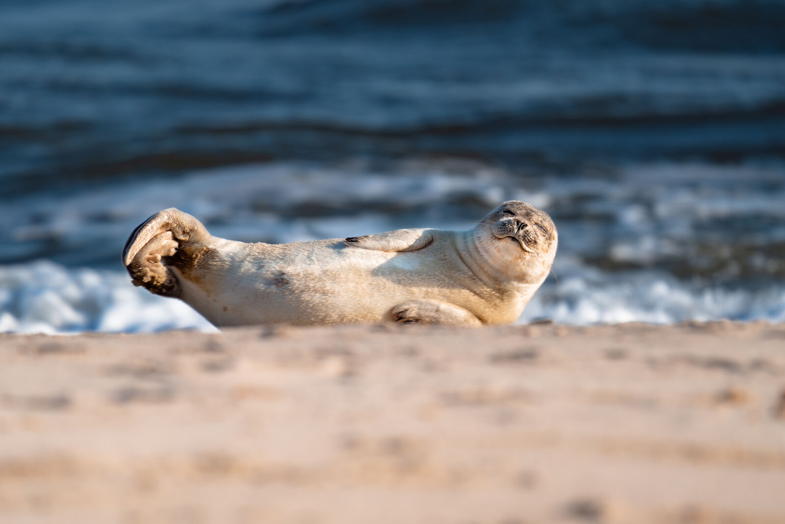 Der Seehund ist die kleinere der beiden Arten. Mit seinem rundlichen Kopf, den dunklen Augen und dem eher zarten Körperbau wirkt er ziemlich niedlich. Seehunde liegen gern auf Sandbänken, ruhen sich aus oder wärmen sich in der Sonne, bevor sie wieder ins Wasser gleiten.