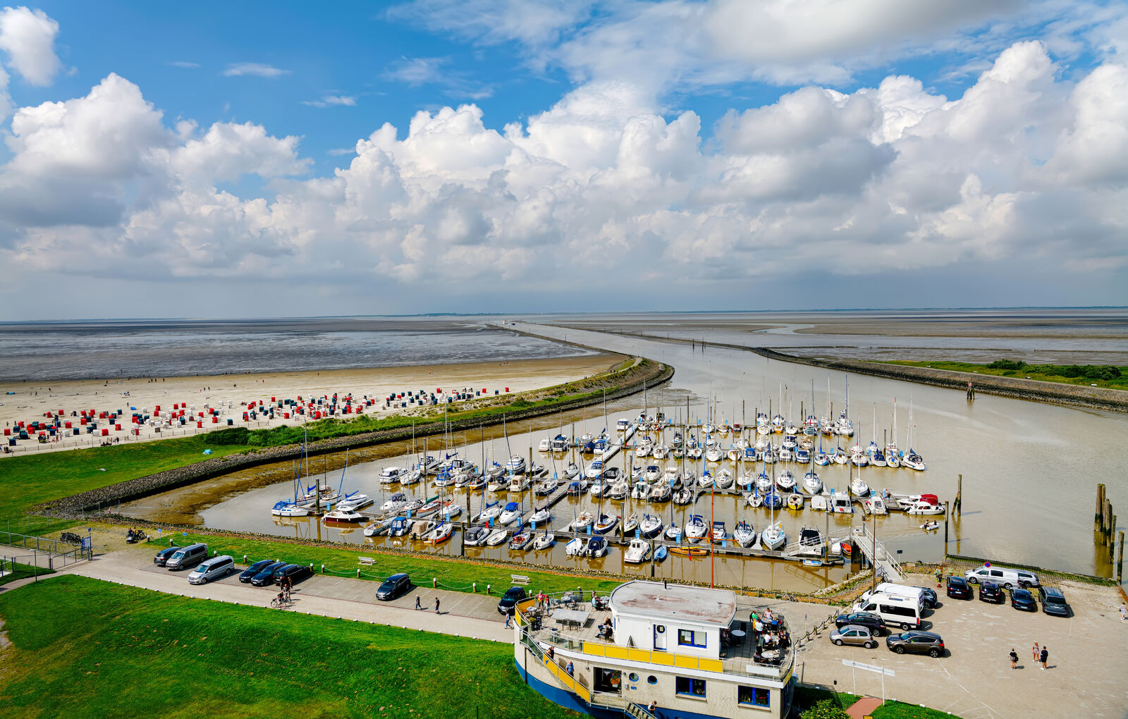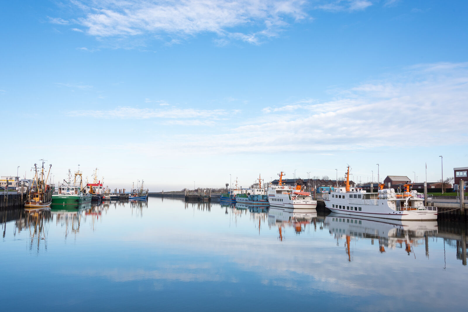Vom Hafen in Bensersiel fährt die Fähre auf die ostfriesische Insel Langeoog.